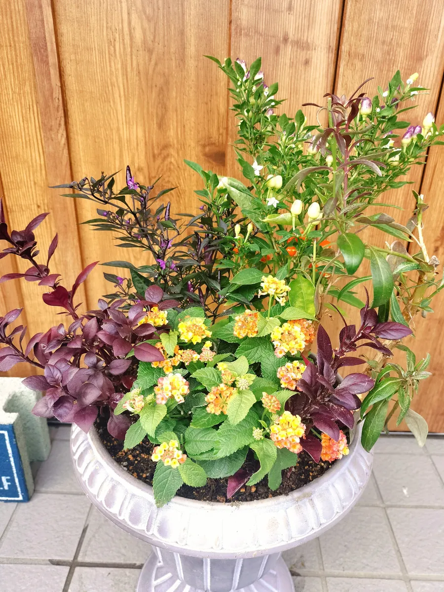 投稿を表示2色の唐辛子、良いですね。ランタナも好きなので、かわいいです。自分も寄せ植えし直さないとなのに、夏の伸び切ったものや枯れかけてるものなどそのままです😨ちゃんと処分するものはして、新たな植物で寄せれば気分も上がりますよね。