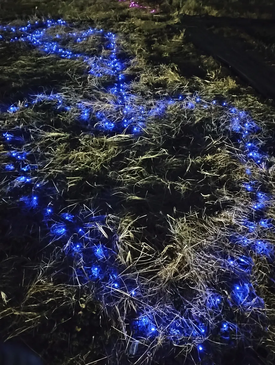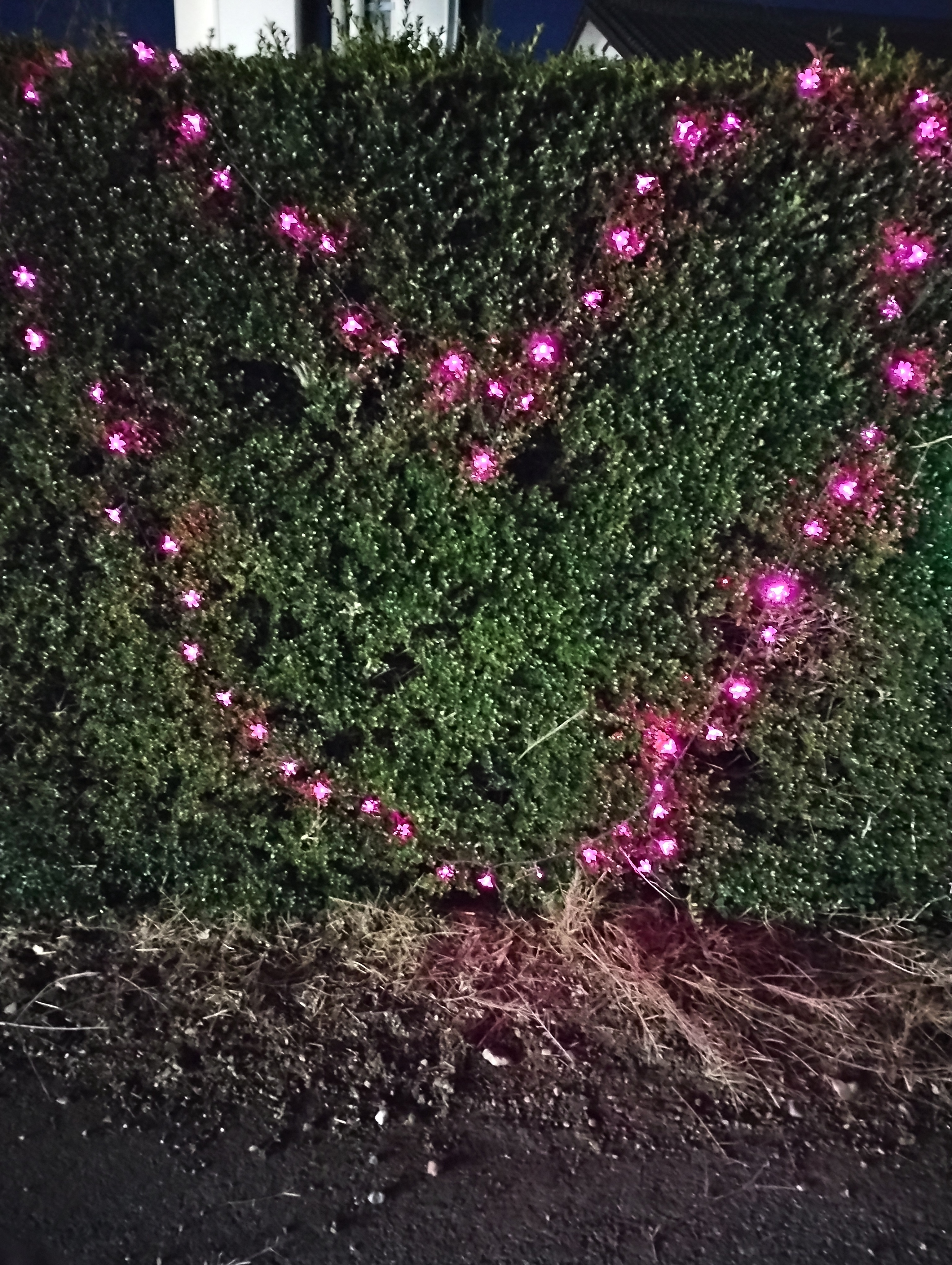 動物?夜の生け垣が幻想的になりました。大変な設置、お疲れ様でした。🙇
