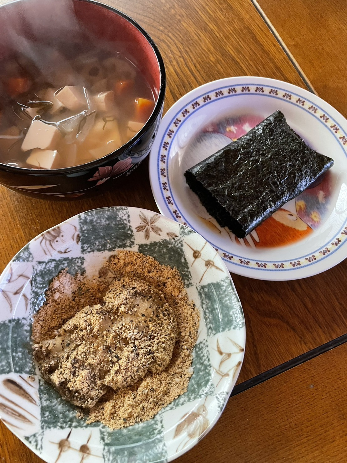 トップ > お正月DIY > キャンペーン > お餅3種 やまさん 2026/01/11 19:11 お餅3種 ■作品内容 お雑煮、砂糖醤油もち、安倍川もち ■工夫ポイント お雑煮は大晦日に作ります。 里芋、人参、大根、蓮根、ごぼうなどの根菜類をサイコロ型に切って、豆腐、昆布を入れます。 醤油味のお雑煮で、大好評です。 安倍川は砂糖、きなこ半々位に塩を少し。今年のきなこは黒大豆のきなこのようで黒っぽいきなこになりましたが美味しかったです。 おせち料理は写メを撮るのを忘れ、お餅3種だけでした。 お正月料理部門 いいね 共有する 共有する X LINE リンクをコピー コメントする 2 件の返信 (新着順) ミュートしたユーザーの投稿です。 投稿を表示 toshi 2026/01/22 08:48 美味しそうですね 安倍川餅、甘くていいですね😊 いいね 返信する ミュートしたユーザーの投稿です。 投稿を表示 ダンボ 2026/01/20 12:58 お餅の三大メニュー、みんな美味しそう! いいね 返信する