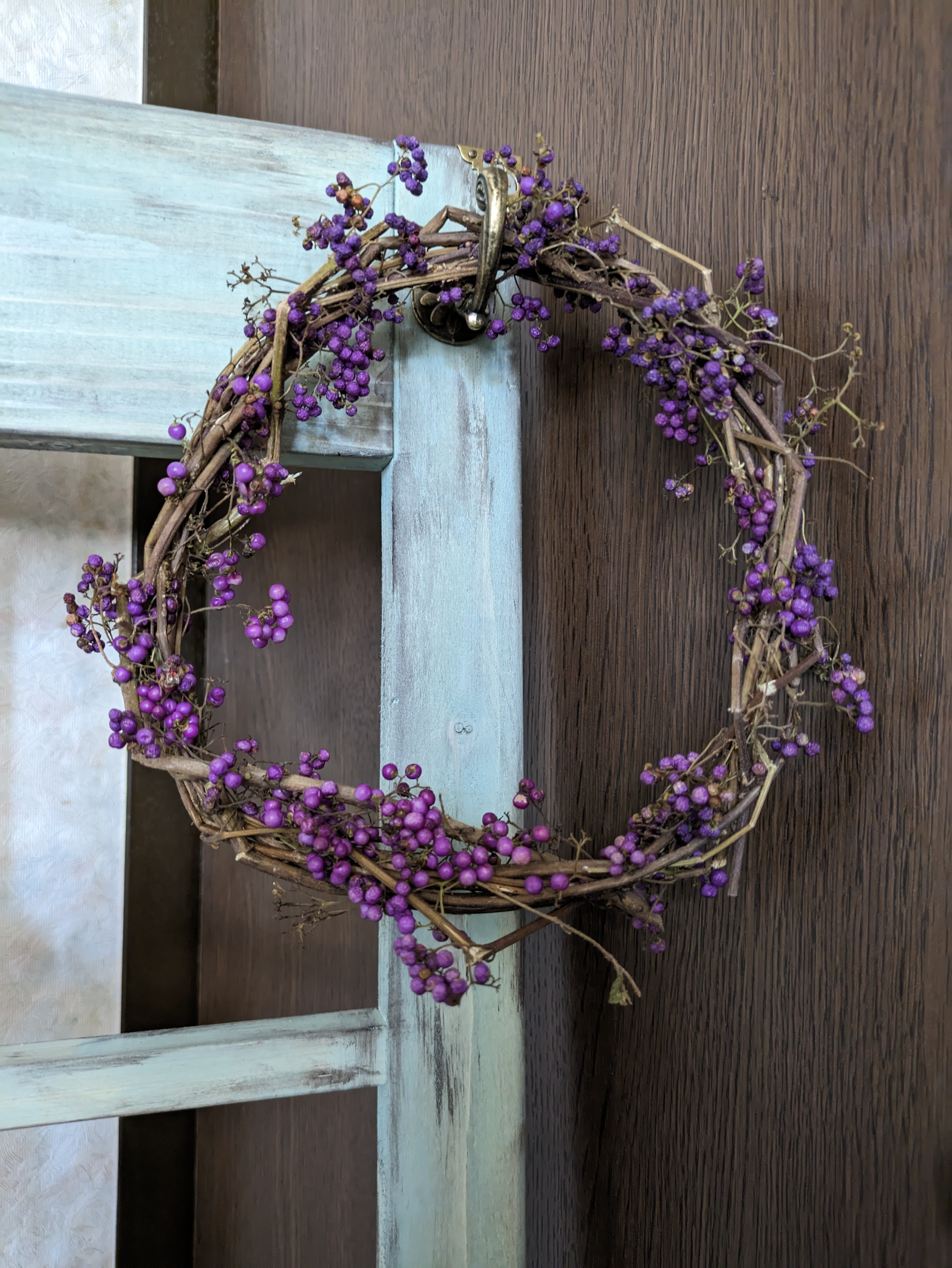実が落ちないように固めるスプレーもあるのですが私は髪の毛を固めるスプレーをひと振りしてリースをとめたりします☺️