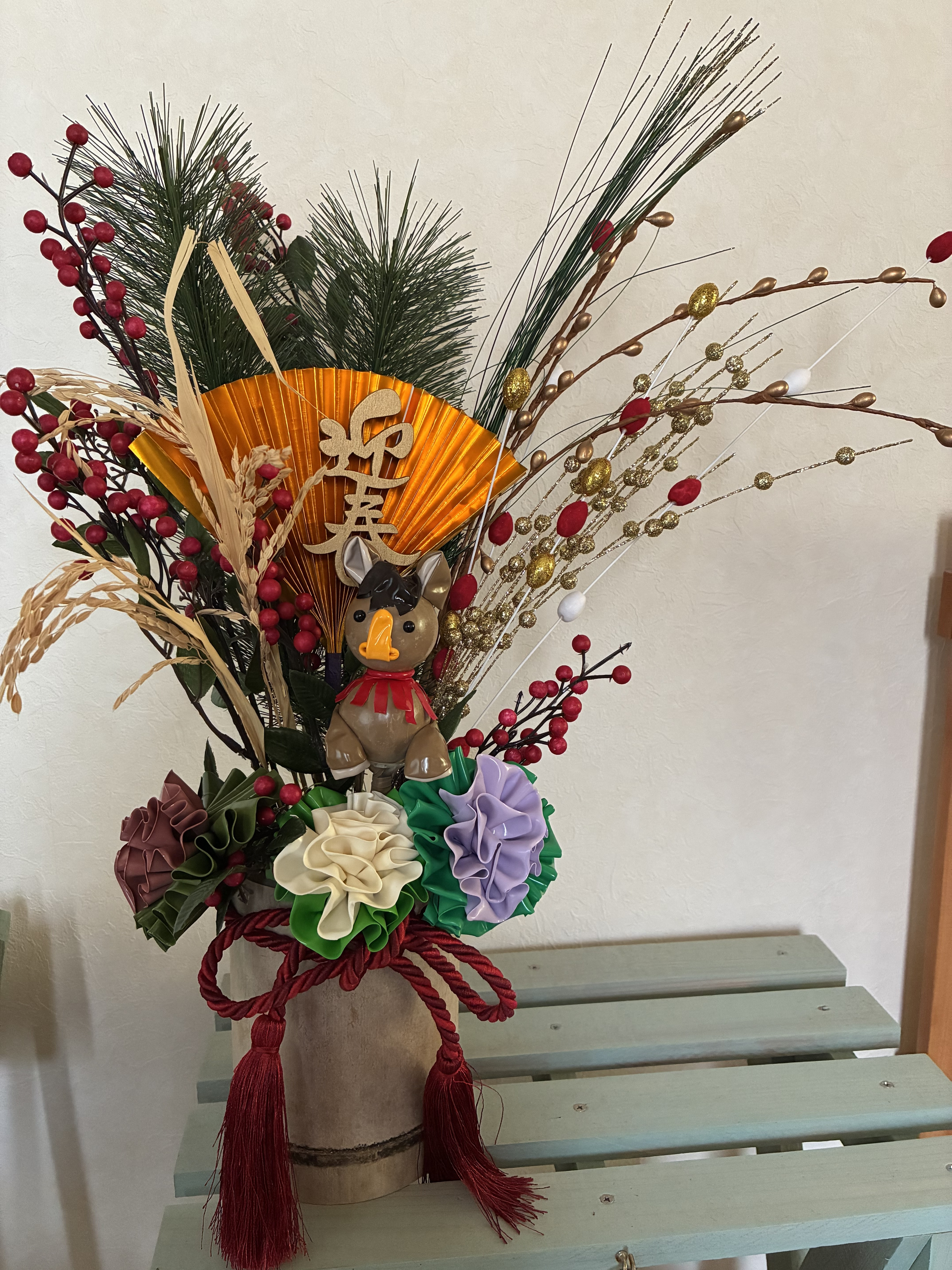 トップ > お正月DIY > キャンペーン > バルーンアートで干支の正月飾り ゆかりん 2026/01/15 01:38 バルーンアートで干支の正月飾り ■作品内容 バルーンを使って干支の午と葉牡丹を作り、正月飾りに取り入れました。 ■工夫ポイント バルーンを膨らませた干支の午をバルーンを切り開いてワイヤーを使って葉牡丹のフリルを表現しました。なかなか思うようにいかず、難しかったです。 お正月飾り部門 干支部門 いいね 共有する 共有する X LINE リンクをコピー コメントする 5 件の返信 (新着順) ミュートしたユーザーの投稿です。 投稿を表示 ちーず 2026/01/16 19:50 バルーンなんだぁ🎈😆 スゴイですね✨素敵💓 いいね 返信する ミュートしたユーザーの投稿です。 投稿を表示 チコリ 2026/01/16 02:11 バルーンアートで可愛い午まで作れるんですね🫏 葉牡丹も凄く上手に表現されてますね😁 いいね 返信する ミュートしたユーザーの投稿です。 投稿を表示 CHIE☆ 2026/01/15 22:12 バルーンで作っちゃうなんて素敵ですね🤩 いいね 返信する ミュートしたユーザーの投稿です。 投稿を表示 ぷぅ 2026/01/15 21:04 可愛い🩷素敵💓 いいね 返信する ミュートしたユーザーの投稿です。 投稿を表示 toshi 2026/01/15 08:57 これは素敵ですね こういう飾り方ができるの憧れちゃいますね😊 いいね 返信する