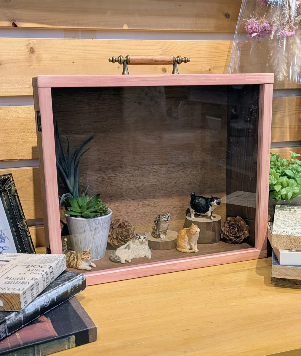 最近集めてる大好きな「はしもとみお」さんのガチャを飾ろうと思って作ったので、木目を活かした塗装にしました🩷🤎