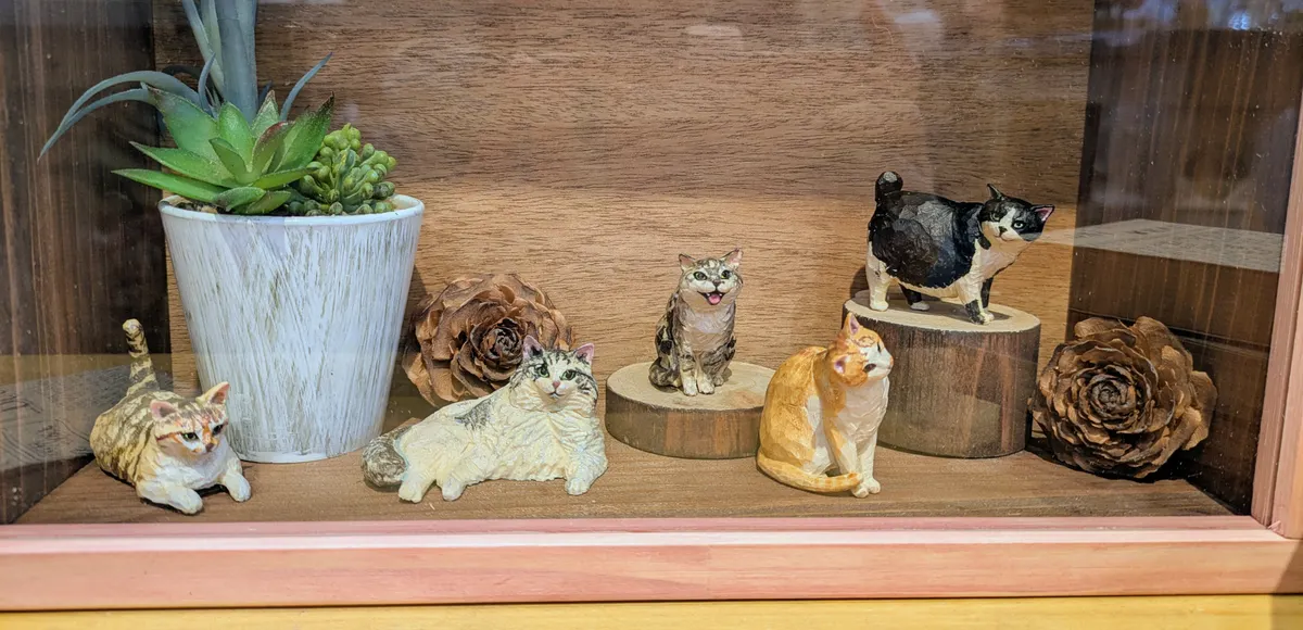 いつもアイデアを考えて、凄いな〜と思います😍取っ手を上に付けると、又、素敵になりましたね💕ガチャの猫ちゃん達も、猫カフェみたいで、いいですね👍