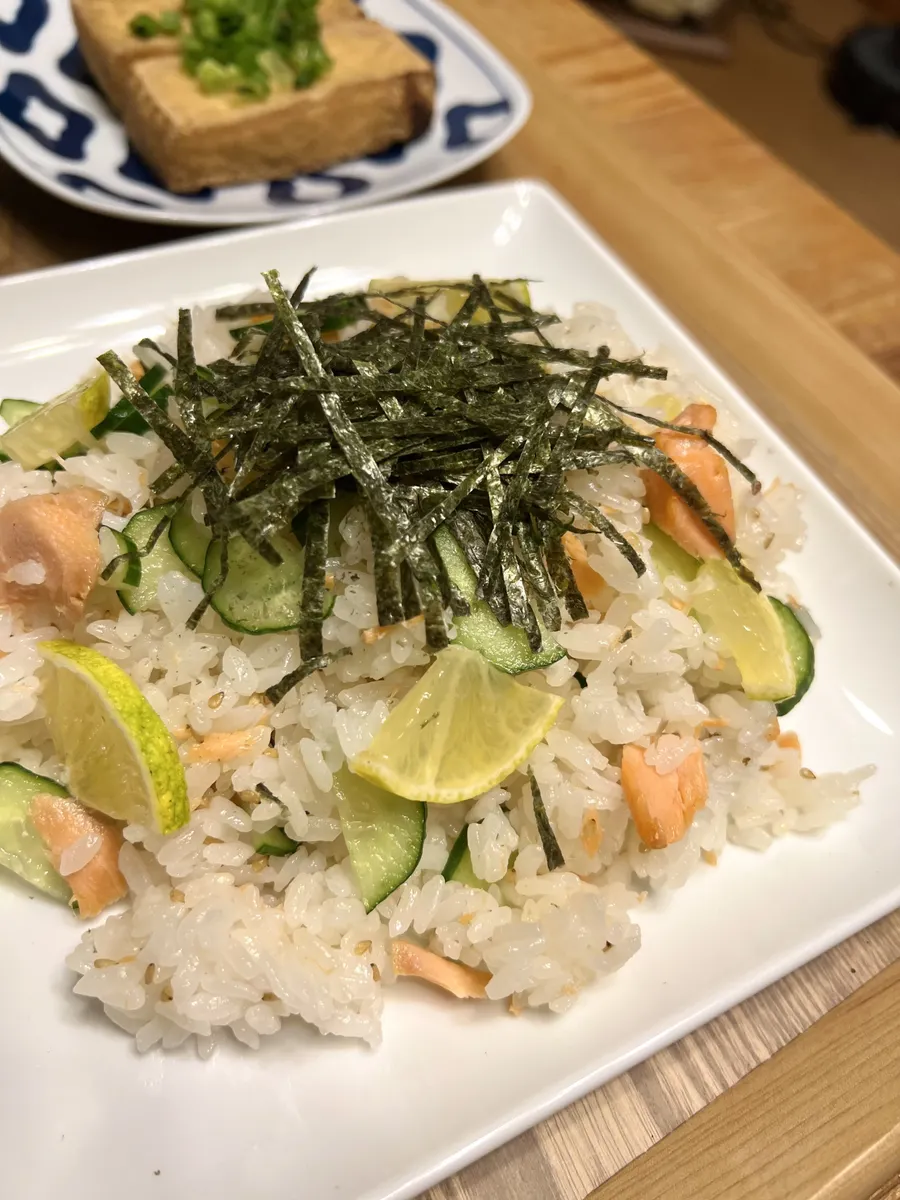 美味しいすだちでつくる鮭のちらし寿司🐟おいしそう♪