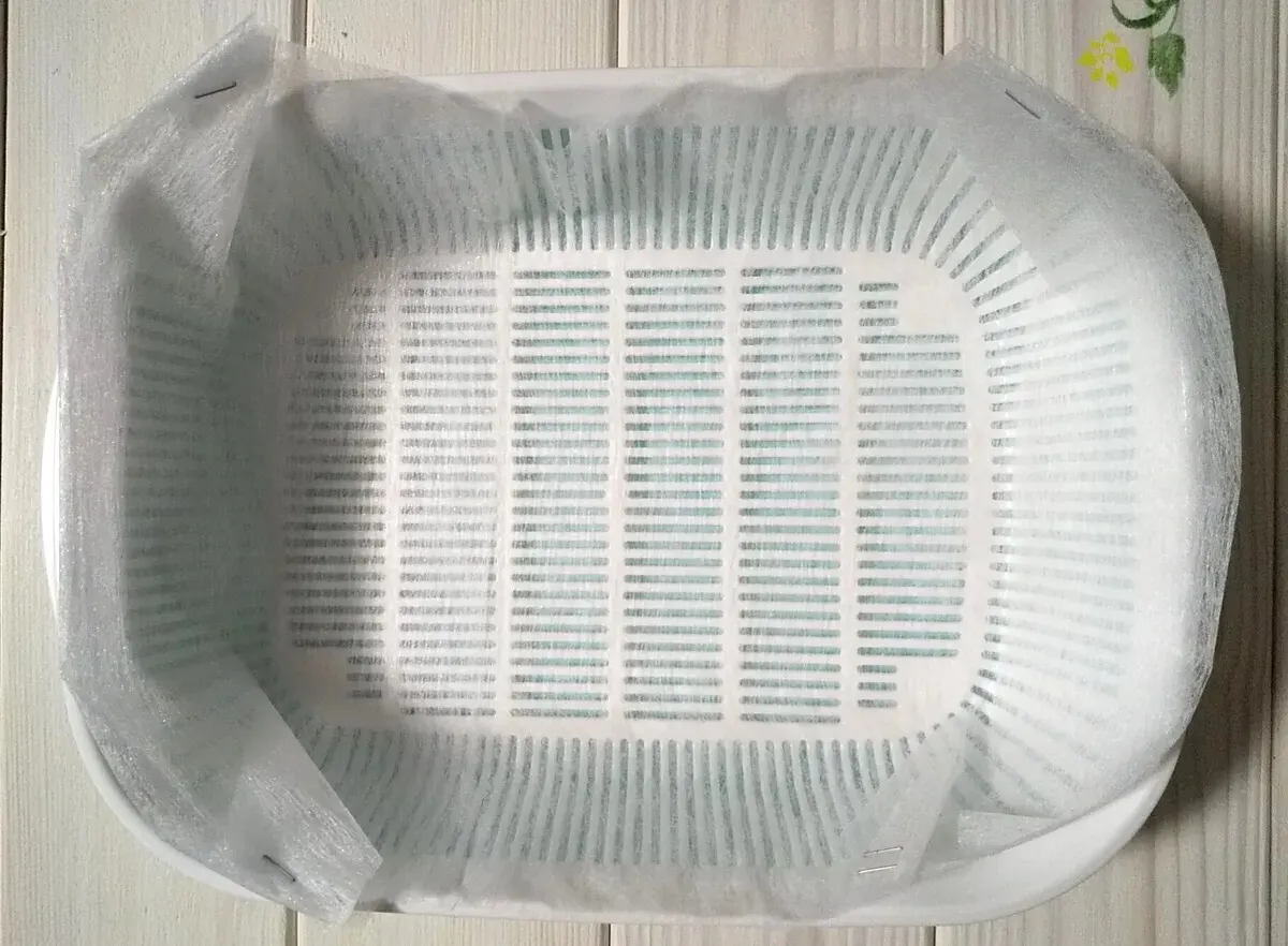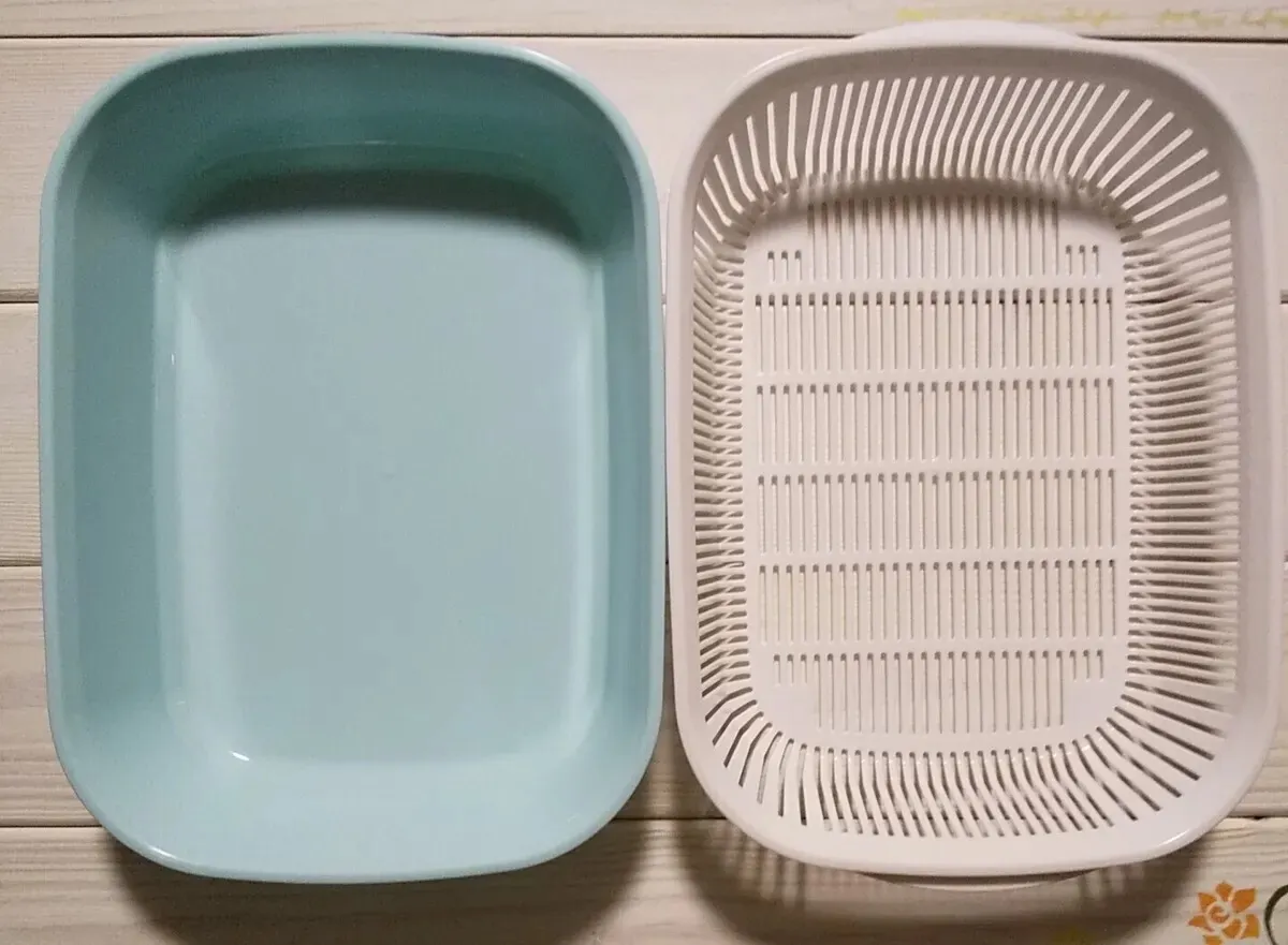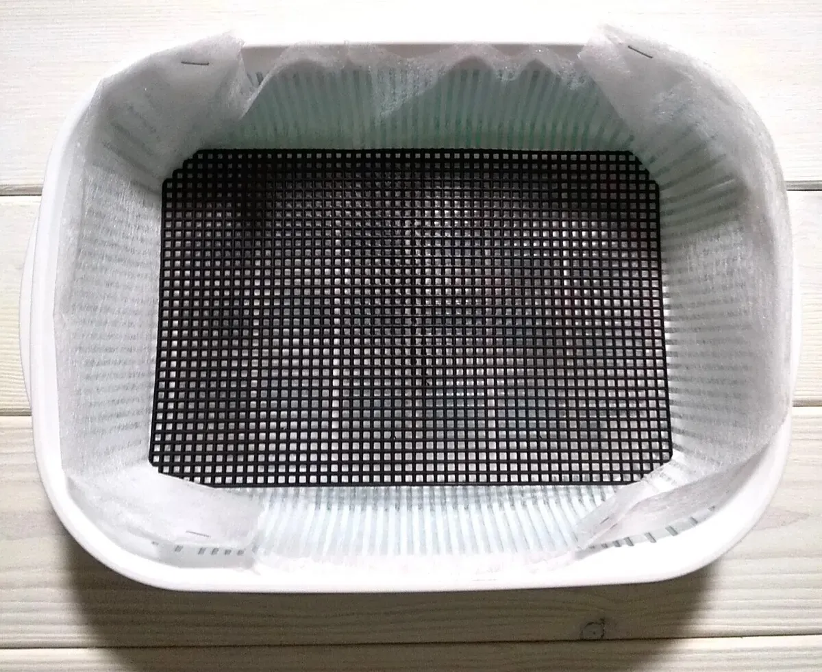 ・水分管理を容易にする為、トレー付きザルを容器にし、保水し過ぎた時は、ザルをトレーから外し、風を入れ乾燥出来る、また、底面給水にも便利
