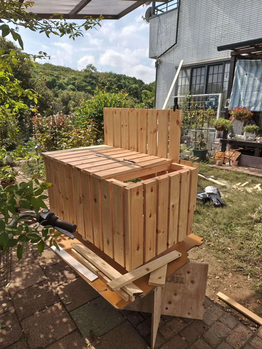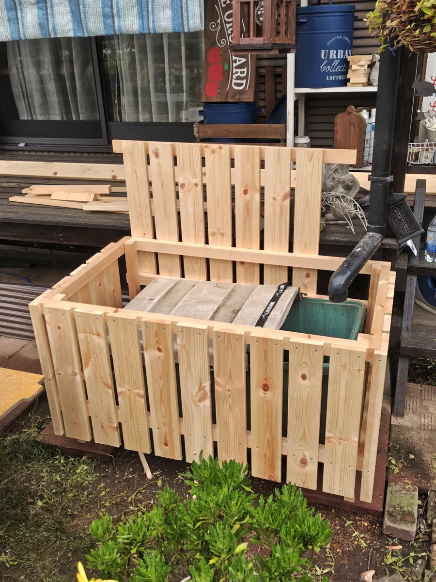トップ > DIY > その他 > 雨水ボックスのカバー① たまご 2025/10/05 13:20 雨水ボックスのカバー① ウッドデッキを作ってからずっとこのボロくなったボックスに雨水を溜めているのです。カバー作ってボロを隠したいなと思い続けて何年経ったかわからないくらいたちましたが、やっと行動に移すことができました😁 旦那に道具を借りて、使い方を習い、アドバイスを参考に先週2日間かけてやっとこここまで出来ました😅👇👇👇 今日は朝から始めましたが、ビス止めをやり直したりでなかなか進まず、お昼すぎまでにフタまでなんとか出来ました😵 これから先週カインズで買っておいた塗料で塗り塗りがんばるぞ~🙌 いいね 共有する 共有する X LINE リンクをコピー コメントする 6 件の返信 (新着順) ミュートしたユーザーの投稿です。 投稿を表示 Toko 2025/10/06 07:34 おおものですね!お疲れ様です。 すっかり見た目も良くなりますね。 私も外のゴミ箱が気になってます…なんとかならないものかと… 考えてみようと思いました。 いいね 返信する ミュートしたユーザーの投稿です。 投稿を表示 シダーローズ 2025/10/06 07:24 プラ製品って長持ちするけど見た目の経年劣化がひどいんですよね〜😭 木製ならそれも味があるってなりますもんね。 塗装頑張ってください。 いいね 返信する ミュートしたユーザーの投稿です。 投稿を表示 コスモス 2025/10/06 01:16 お疲れ様です 素敵なカバーですね😍 いいね 返信する ミュートしたユーザーの投稿です。 投稿を表示 たまご 2025/10/06 07:07 コスモス コスモスさんコメントありがとうございます😊 素敵に完成するよう頑張ります✊ いいね 返信する ミュートしたユーザーの投稿です。 投稿を表示 ぷぅ 2025/10/05 23:09 大物ですね‼️ いいね 返信する ミュートしたユーザーの投稿です。 投稿を表示 たまご 2025/10/06 07:06 ぷぅ ぷうさんコメントありがとうございます😊 めっちゃ重いんです〜💦💦ひっくり返すのも大変で、まだ塗り終わりません😫 いいね 返信する ミュートしたユーザーの投稿です。 投稿を表示 シン ひよっこ 葵 2025/10/05 20:39 たまごさん、こんばんは とてもすてき✨ カバー、とってもいいかんじですね(人´∀`) いいね 返信する ミュートしたユーザーの投稿です。 投稿を表示 たまご 2025/10/06 07:04 シン ひよっこ 葵 シンひょっこ葵さんコメントありがとうございます😊 昨日中に塗装終わりませんでした😰 早く完成させたいです😁 いいね 返信する ミュートしたユーザーの投稿です。 投稿を表示 mar 2025/10/05 16:42 ∑(๑ºдº๑)!!めちゃくちゃ素敵です! このまま木の感じも素敵ですね! いいね 返信する ミュートしたユーザーの投稿です。 投稿を表示 たまご 2025/10/05 17:08 mar marさんコメントありがとうございます😊 木目が見えるのも良かったかも😁 でもピュアホワイトで塗っちゃた😆 結局今日中の完成は無理でしたー😭 いいね 返信する ミュートしたユーザーの投稿です。 投稿を表示 mar 2025/10/05 17:22 たまご そうなんですね! お気に入り作品ができるのが素敵です 私はWSで準備されたものしか できないので( ˊᵕˋ ;) いいね 返信する ミュートしたユーザーの投稿です。 投稿を表示 たまご 2025/10/06 03:59 mar 私もWSでしか作ったことなかったです😁 自分で作ってみて、色々準備されているWSの有り難さと、アドバイザーさんたちって凄いんだなとつくづく思いました😊 今回旦那に丸ノコを貸してもらって木材カットが出来たのでなんとか形にすることが出来ました😊 いいね 返信する