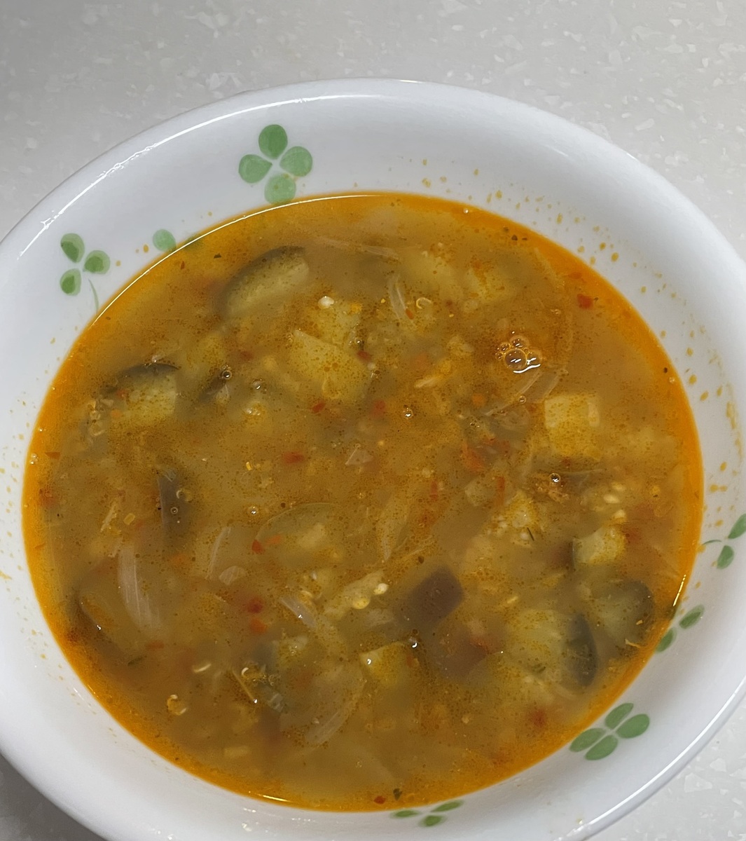 投稿を表示ツヤツヤのおナス キヌアのスープで健康的ですね💕︎