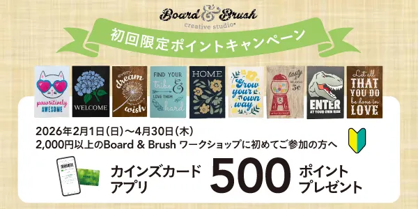 2,000円以上のBoard & Brushワークショップに初めてご参加いただいたお客様へ、もれなくカインズポイント500ポイントをプレゼント!