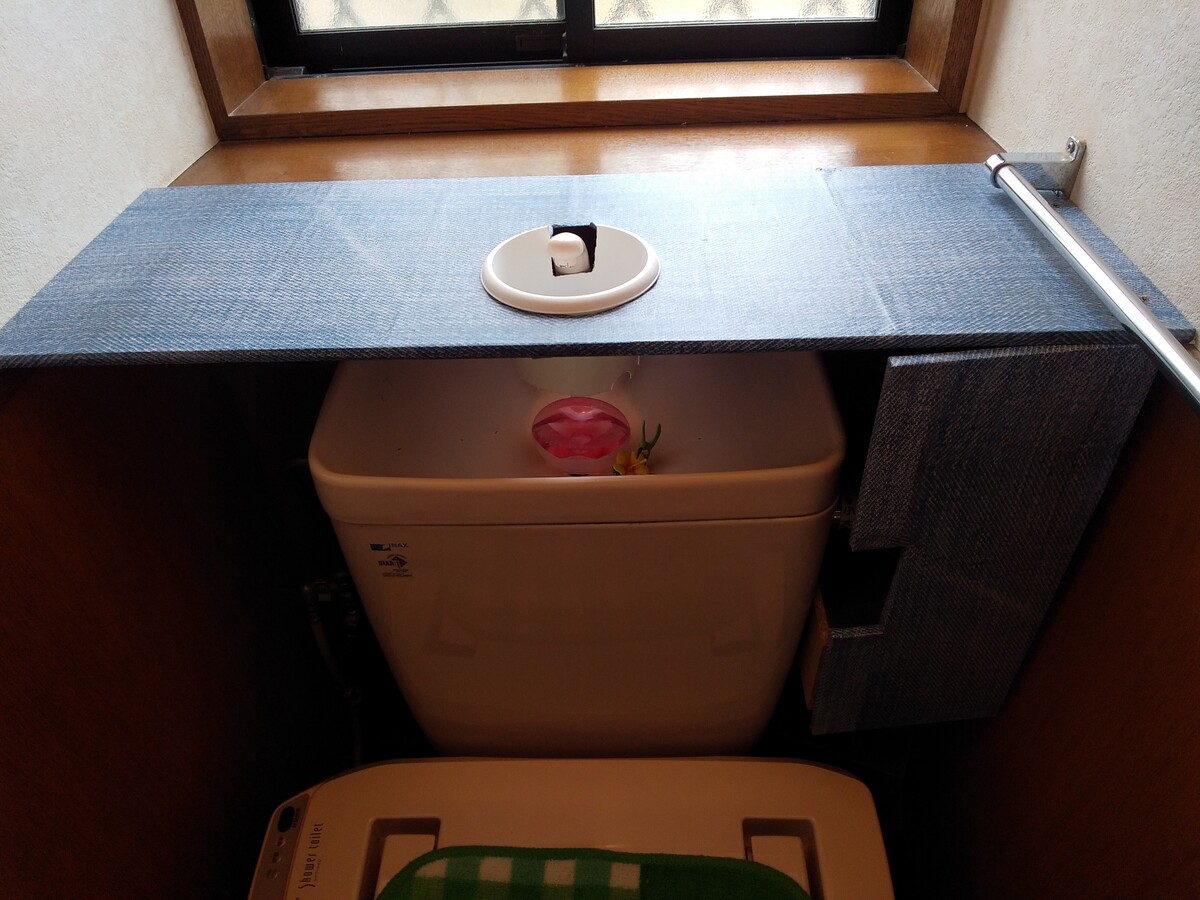 これは、トイレタンク横に掃除用品を入れる棚 として作成しました。