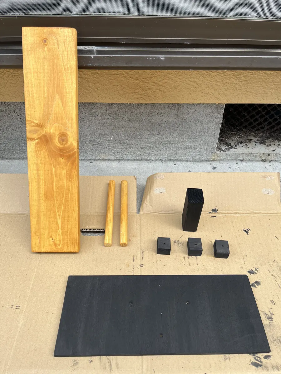 ①材料は百均で購入したものと家にある木の端材のみで製作しました。