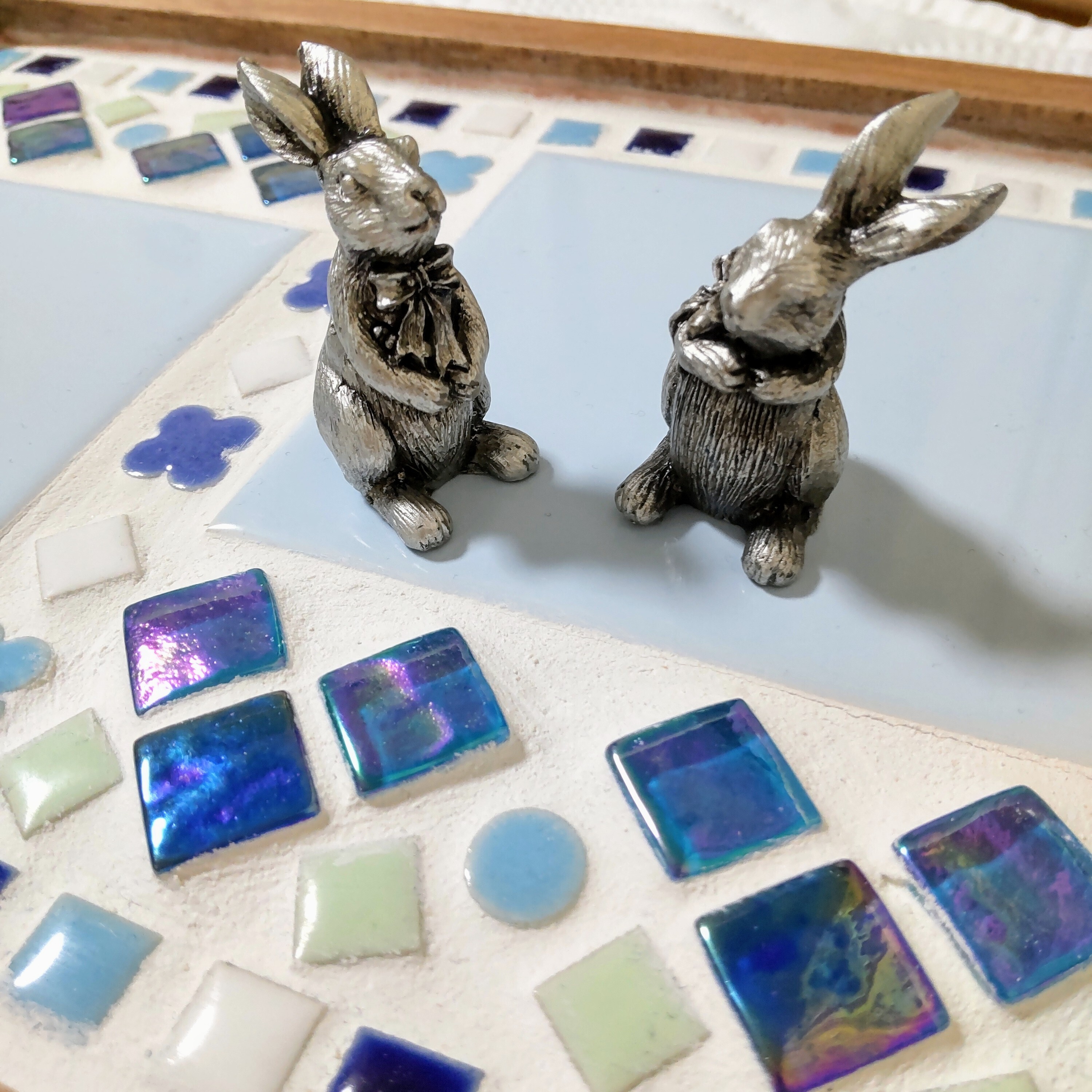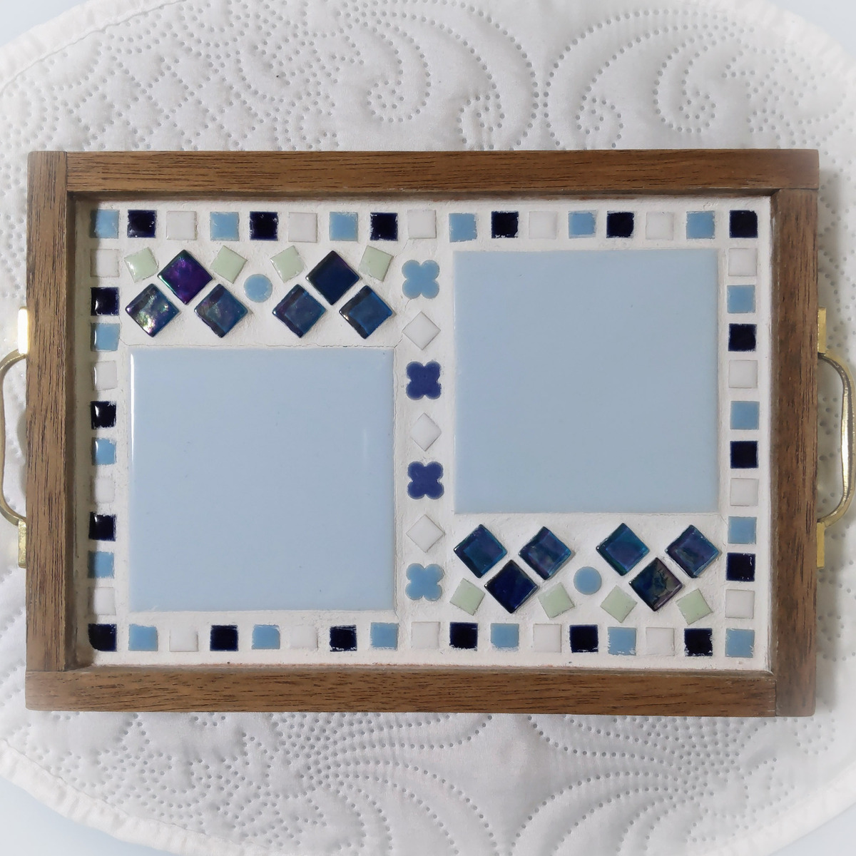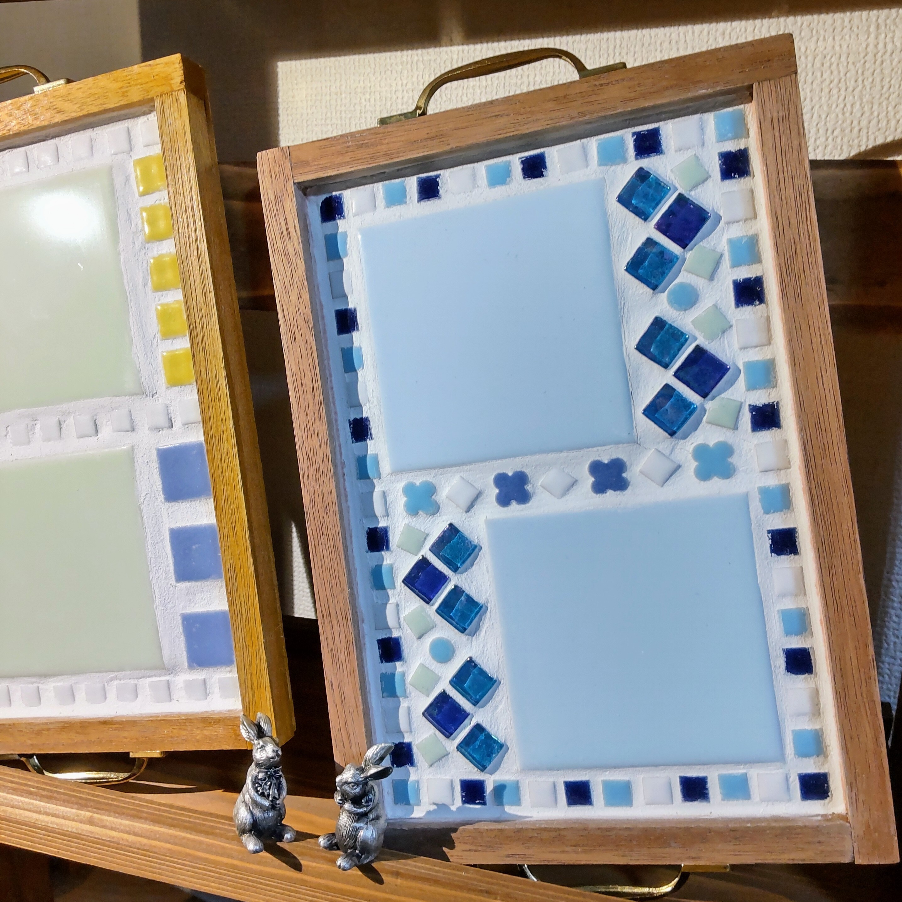 モザイクタイルと木材でカフェトレイ☕️ ガラスタイルも添えて💙