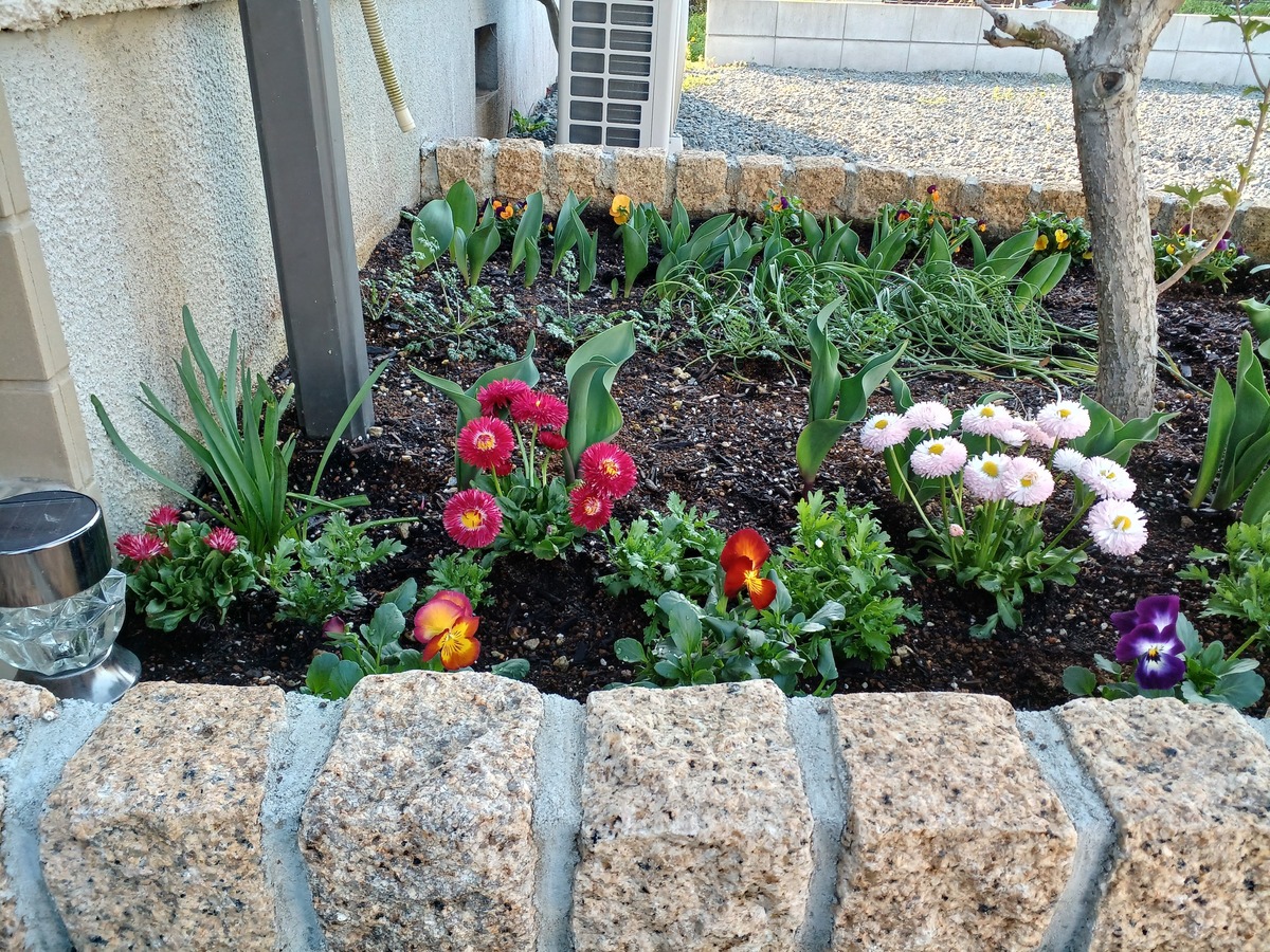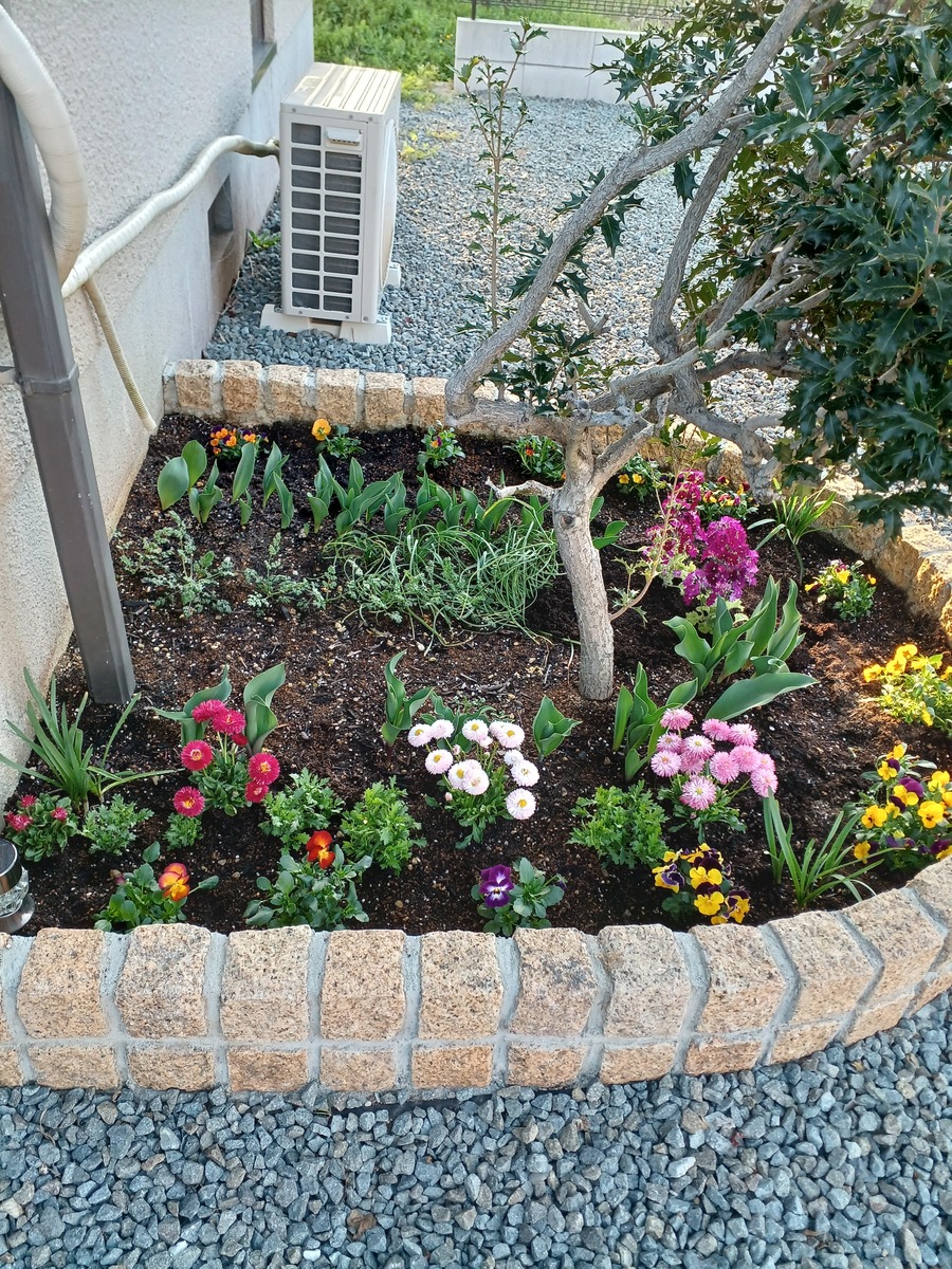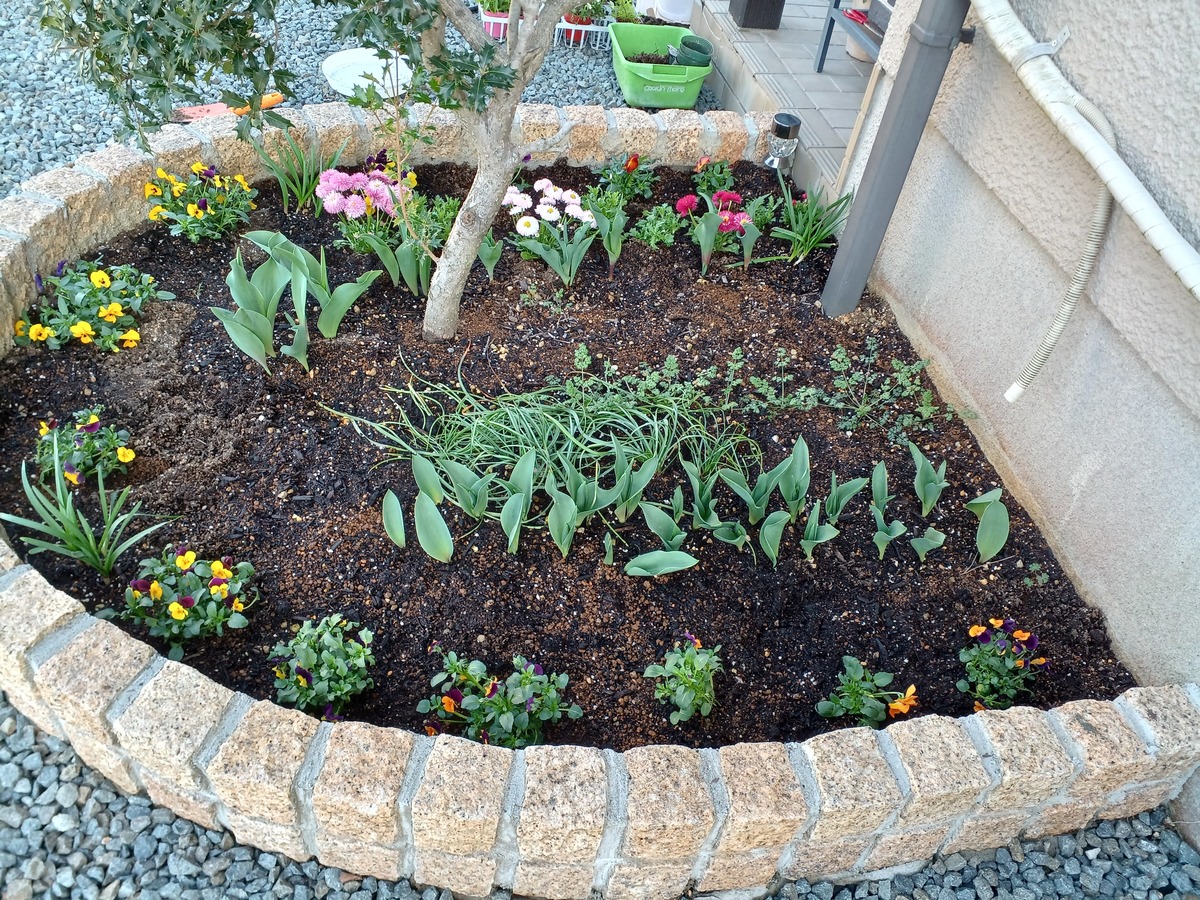昨年の11月末にチューリップ球根🌷32、種から育てたノースポールの苗5、オルラヤの苗7、オルラヤの種たくさん植わっています‼️