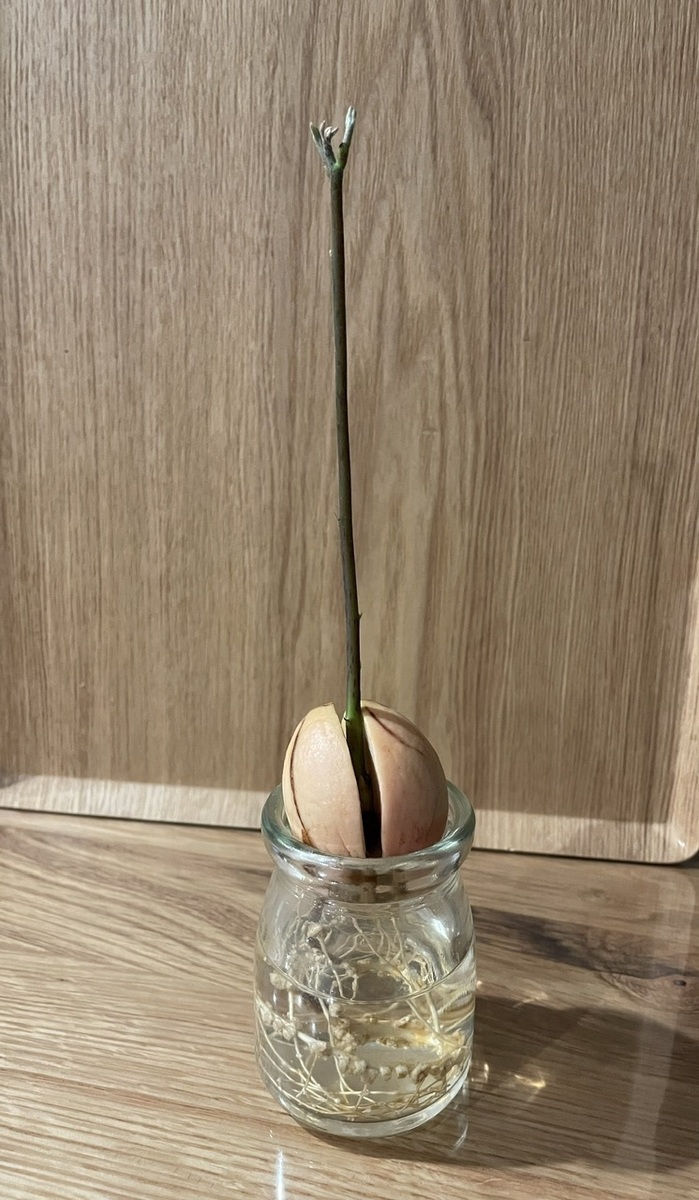 投稿を表示瓶にすっぽり入ってて可愛いですね🌱うちは種を水につけてから植木鉢(土)に植えましたが、成長して葉も出ています。水だけあげてたので、肥料あげないと!と思いました。