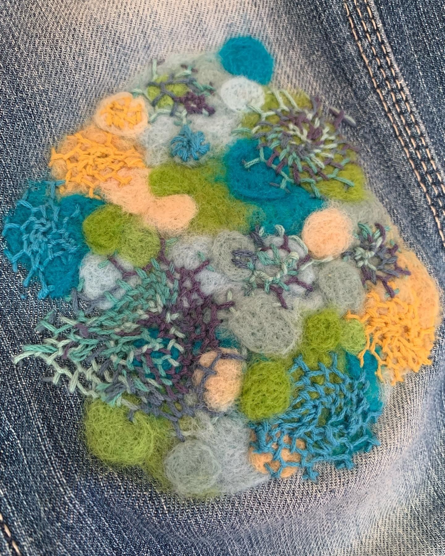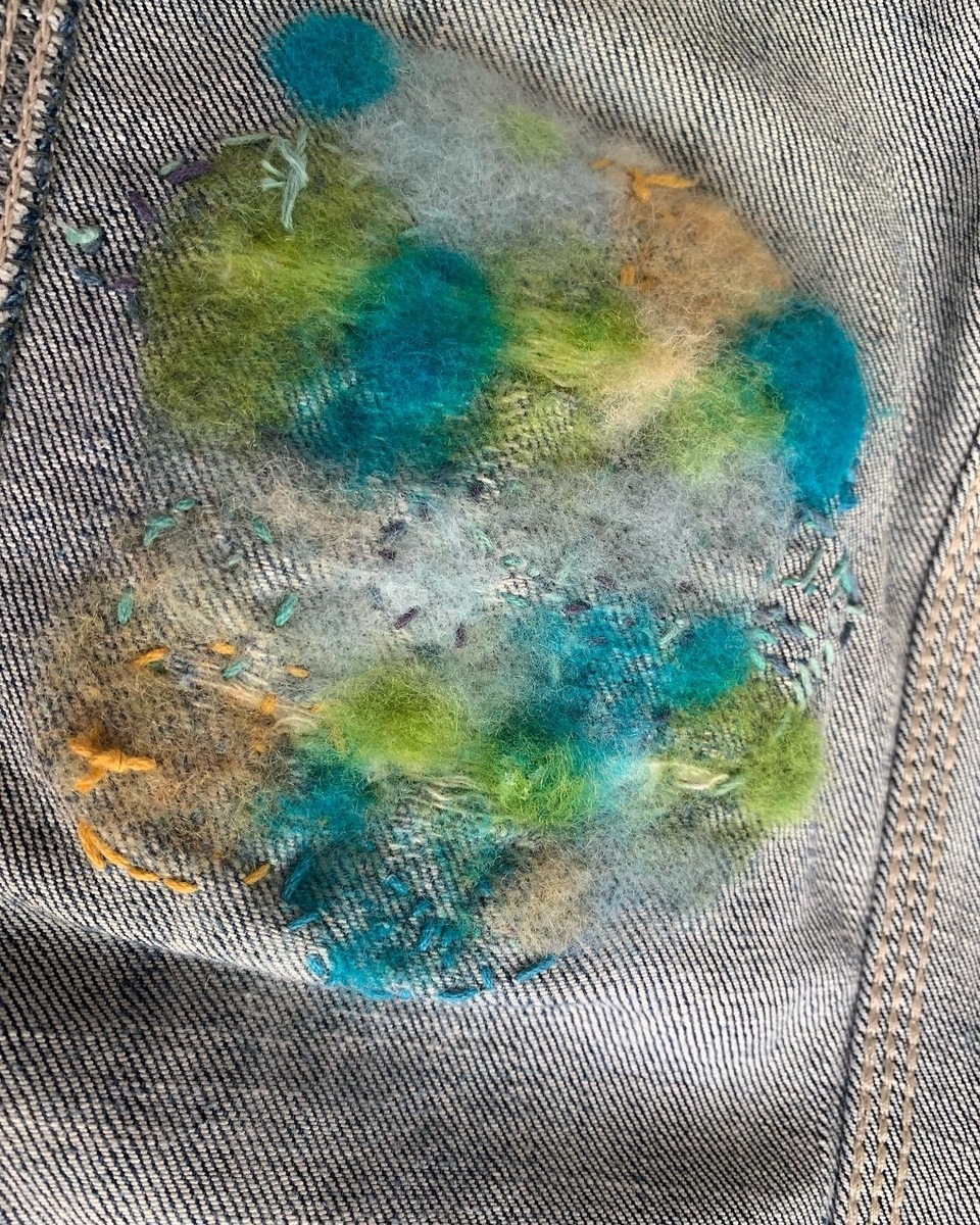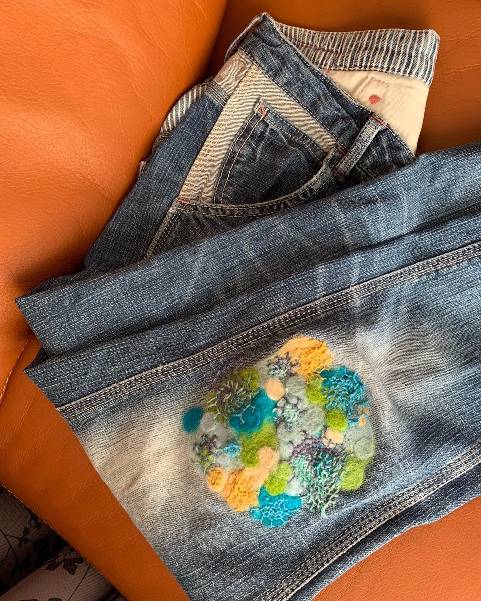 私も破けたジーンズあって、アップリケか刺繍か…と思ってましたが、羊毛パッチも可愛いですね😍💓