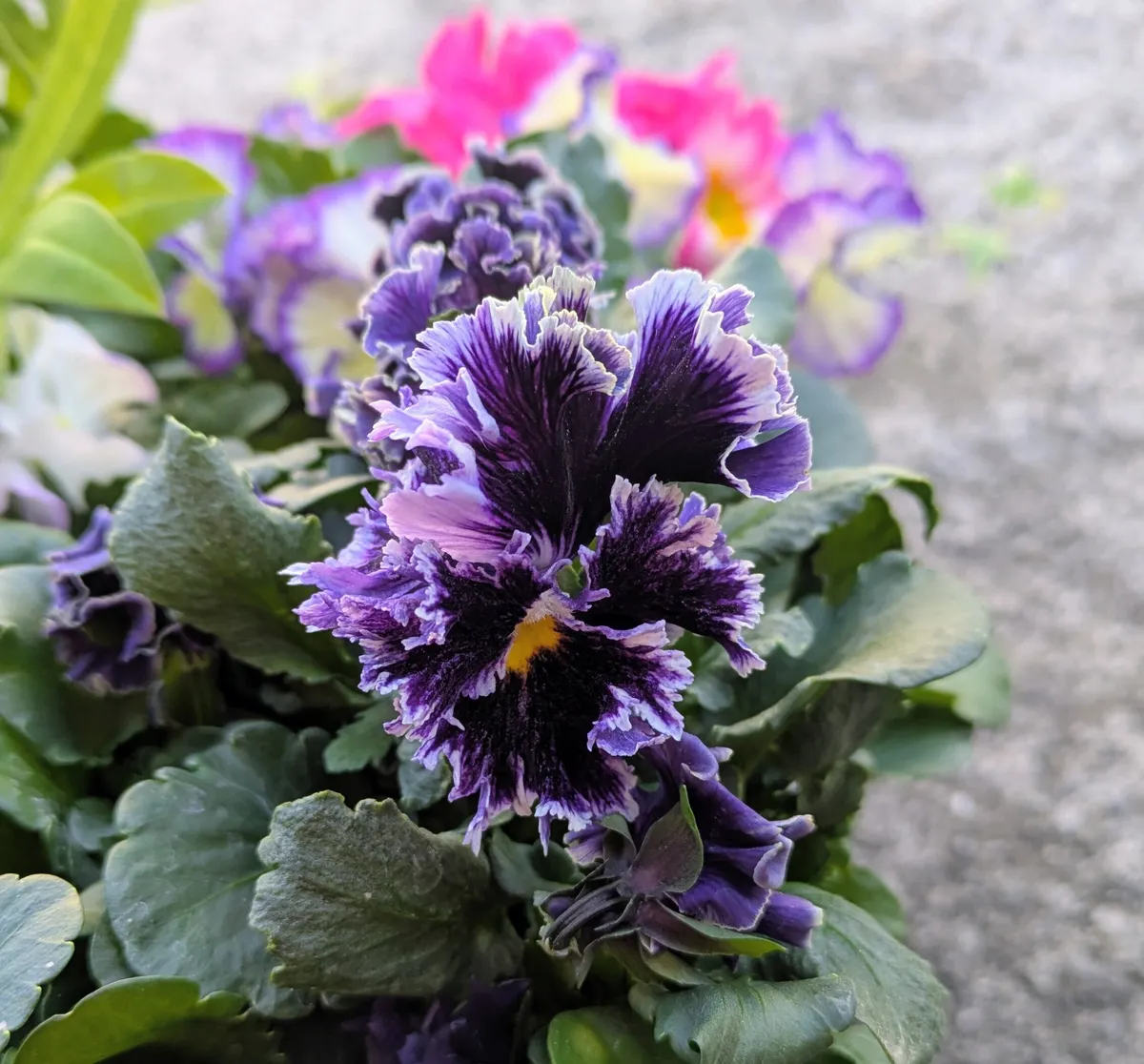 フリンジのあるパンジーは、これだけを愛でたくて寄せ植えにはしませんでした🤭💕