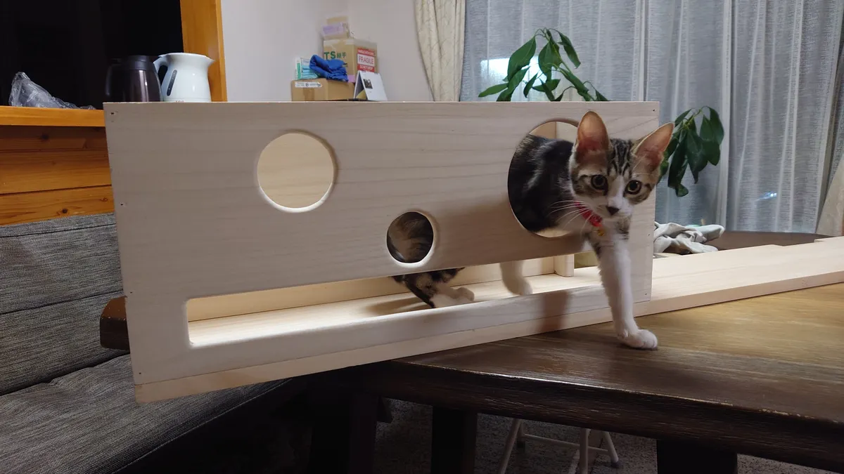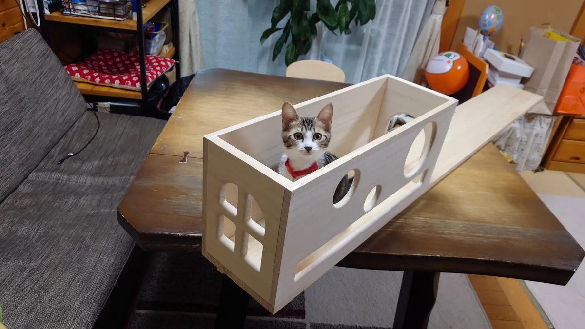 トップ > にゃん祭りDIY2026 > キャンペーン > 〜 展望台付き長押キャットウォーク 〜 ENIGMA 2026/02/10 22:48 〜 展望台付き長押キャットウォーク 〜 ■作品内容 小部屋展望台付き長押キャットウォークです💡 ■作品のこだわりポイント 和室リビングの長押に設置したキャットウォーク。 キャットウォーク上に小部屋、その屋上に展望台を載せました💡 キャットウォーク 小部屋 猫 展望台 いいね 共有する 共有する X LINE リンクをコピー コメントする 7 件の返信 (新着順) ミュートしたユーザーの投稿です。 投稿を表示 イコ 2026/02/20 17:15 いいなぁ… いいね 返信する ミュートしたユーザーの投稿です。 投稿を表示 ENIGMA 2026/02/20 19:54 イコ 是非🪚🔨チャレンジを!! いいね 返信する ミュートしたユーザーの投稿です。 投稿を表示 シダーローズ 2026/02/14 22:35 うわ、ステキすぎる! うちの3びきの猫は全員シニアなのでもう高い所には行かなくなりましたが、squareは猫飼いさん多いですから「この投稿、うちの猫たちに見つかったらエラいことになる!」って思ったのは私だけではないはず ꉂ🤣w𐤔 いいね 返信する ミュートしたユーザーの投稿です。 投稿を表示 ENIGMA 2026/02/14 23:47 シダーローズ このキャットウォークも、エラいことになりますかね(´艸`) いいね 返信する ミュートしたユーザーの投稿です。 投稿を表示 はまサン 2026/02/12 14:48 きちっとした仕事ぶりで感心しました。また猫ちゃんへの愛情の入れ方が伝わってきますす。キャットウォークを部屋の長押(なげし)に張り巡らせ猫ちゃんも嬉しいでしょうね、見張り台も立派です。ここでくつろぎながら家族を見張っているのでしょう😺。 いいね 返信する ミュートしたユーザーの投稿です。 投稿を表示 ENIGMA 2026/02/12 16:30 はまサン そんなにお褒めの言葉をいただきますと当方照れるのであります。💧 ただ納得が行く作業をしてるだけで、妥協しまくってます! 広い作業場、ちゃんとした道具があればといつも思いながら工作しとります💦 猫の方は保護猫を活動家の方より引き取りまして、引き取るからには一生面倒をみて快適に過ごしてもらう覚悟で一緒に暮らしとりますに♡ いいね 返信する ミュートしたユーザーの投稿です。 投稿を表示 ENIGMA 2026/02/12 20:41 はまサン 鴨居じゃなくて長押でしたゎ🤣 いいね 返信する ミュートしたユーザーの投稿です。 投稿を表示 はまサン 2026/02/13 17:40 ENIGMA 工具を見て工作が大好きだとわかります。 工具があるから設計する。 工具があるから作りたくなる。 工具があるから仕事が早くできる。 工具があるから楽しい🎶 工具があるから家族に喜んでもらえる。 工具があるから猫ちゃんも嬉しい😺😸 工具があるからみんな嬉しい。 妥協ならオッケー次のステップへの近道だもの。 あいだみつお……、😁 写真を見ると妥協しない真剣な造りが納得させているのでしょう。 写真の撮り方からも感じられますイロイロな角度から撮っています作品の高さからその上からなど矢張り妥協しない仕事と同じものを感じます。😺😺😺 ありがとうございます✨ いいね 返信する ミュートしたユーザーの投稿です。 投稿を表示 ENIGMA 2026/02/13 21:28 はまサン 困ったもんで、工作するごとに🔧工具が増えていく気が··· さて次は何を工作しましょうかね✨ いいね 返信する ミュートしたユーザーの投稿です。 投稿を表示 はまサン 2026/02/14 06:45 ENIGMA 工具 付け加えましたね。 家具系の雑誌などヒントが見つかるかも。 周りの困った☹️にヒントがあるかも。 いいね 返信する ミュートしたユーザーの投稿です。 投稿を表示 ENIGMA 2026/02/14 09:08 はまサン 雑誌もですが、有難いことにDIYする際💻️ネットが誠に役立っとりますね💡 バイクを軽く🔧かまう時も、もはやサービスマニュアルいらなくても出来ちやまいますもんね♬ 便利な世の中になりました✨ いいね 返信する ミュートしたユーザーの投稿です。 投稿を表示 DIY野良猫 2026/02/12 03:40 小部屋展望台素敵ですね~ 可愛いお顔に見えます😸 お口?から出ているアンヨ こちょこちょしたいです😽 いいね 返信する ミュートしたユーザーの投稿です。 投稿を表示 ENIGMA 2026/02/12 06:21 DIY野良猫 板に適当に穴を開けたら顔みたいになってしまいました💦 口に見える長方形の穴は、中で寝そべっても見えるようにと開けました💡 いいね 返信する ミュートしたユーザーの投稿です。 投稿を表示 DIY野良猫 2026/02/13 03:29 ENIGMA いつも見ていたいですよね〜😻 いいね 返信する ミュートしたユーザーの投稿です。 投稿を表示 ENIGMA 2026/02/13 04:16 DIY野良猫 そうなんですょ💡 いいね 返信する ミュートしたユーザーの投稿です。 投稿を表示 べるん 2026/02/11 09:33 猫ちゃんも楽しそうなデザインで、とても素敵ですね✨ お部屋の窓からお顔や手足を出した姿にも、癒されますね😻 いいね 返信する ミュートしたユーザーの投稿です。 投稿を表示 ENIGMA 2026/02/11 12:24 べるん ありがとうございます💡 ペロ~ンと、寛いでおりますに🤣