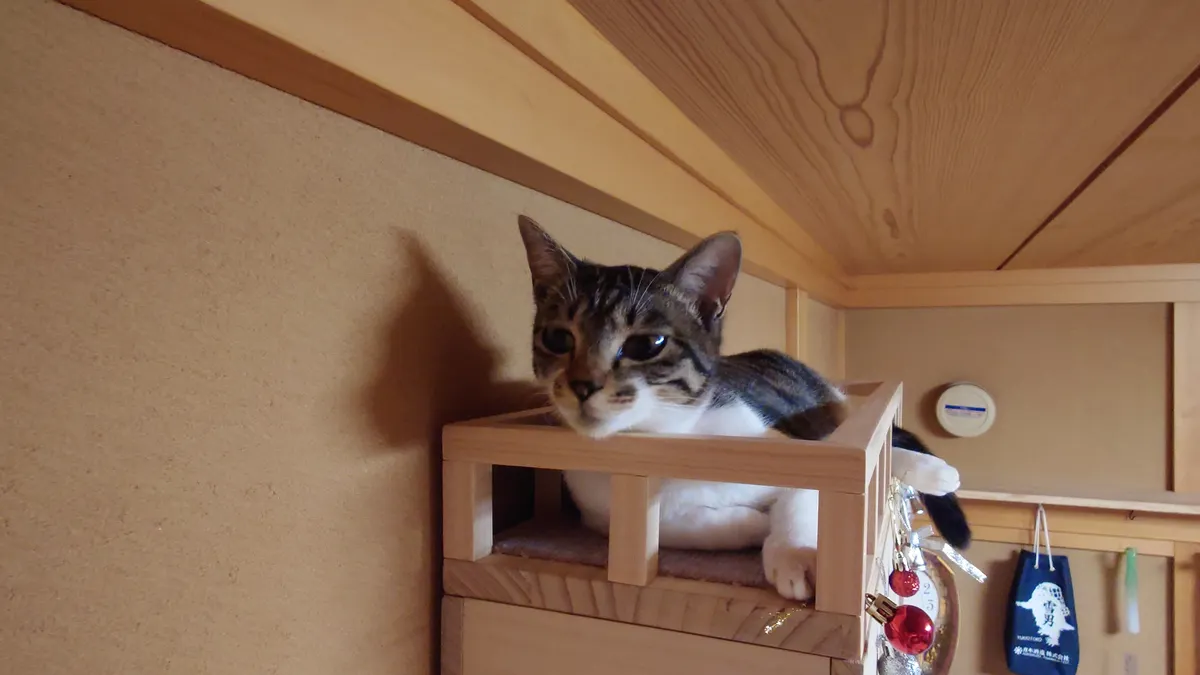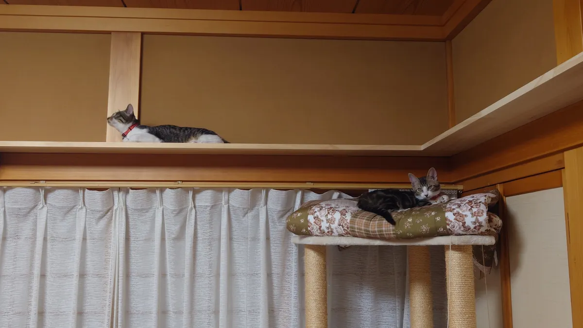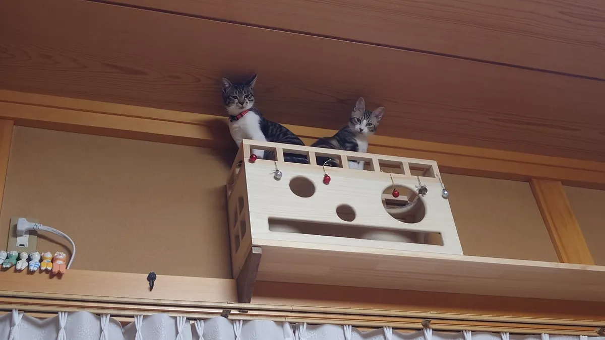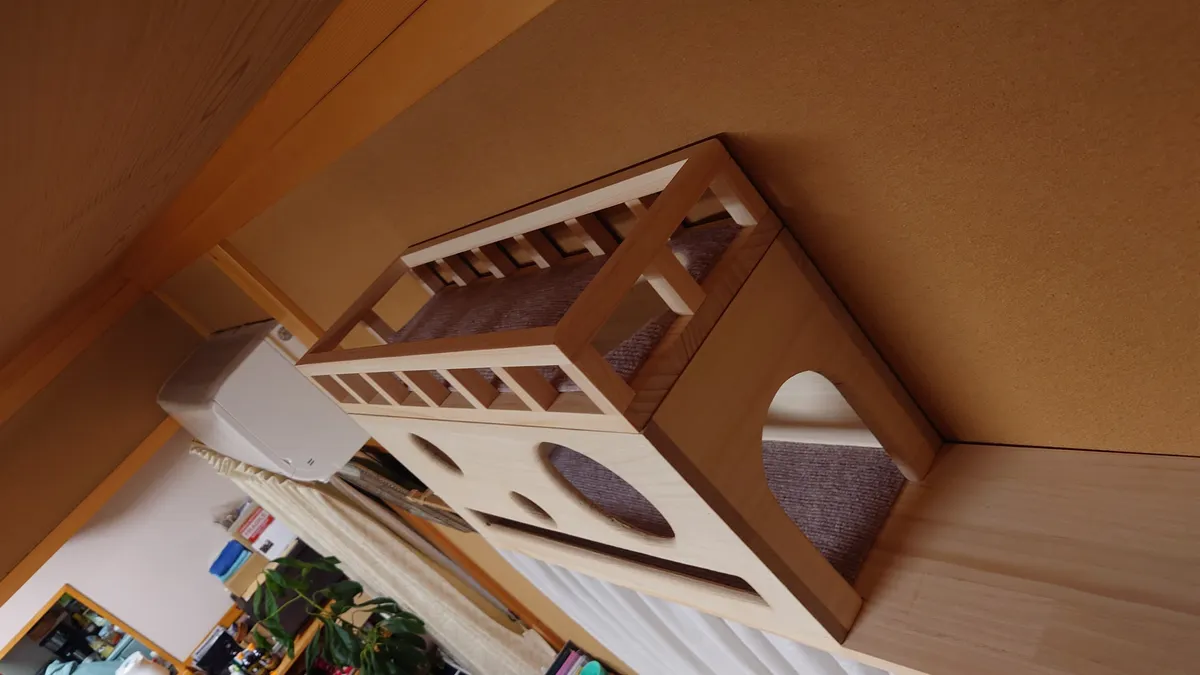 投稿を表示きちっとした仕事ぶりで感心しました。また猫ちゃんへの愛情の入れ方が伝わってきますす。キャットウォークを部屋の長押(なげし)に張り巡らせ猫ちゃんも嬉しいでしょうね、見張り台も立派です。ここでくつろぎながら家族を見張っているのでしょう😺。