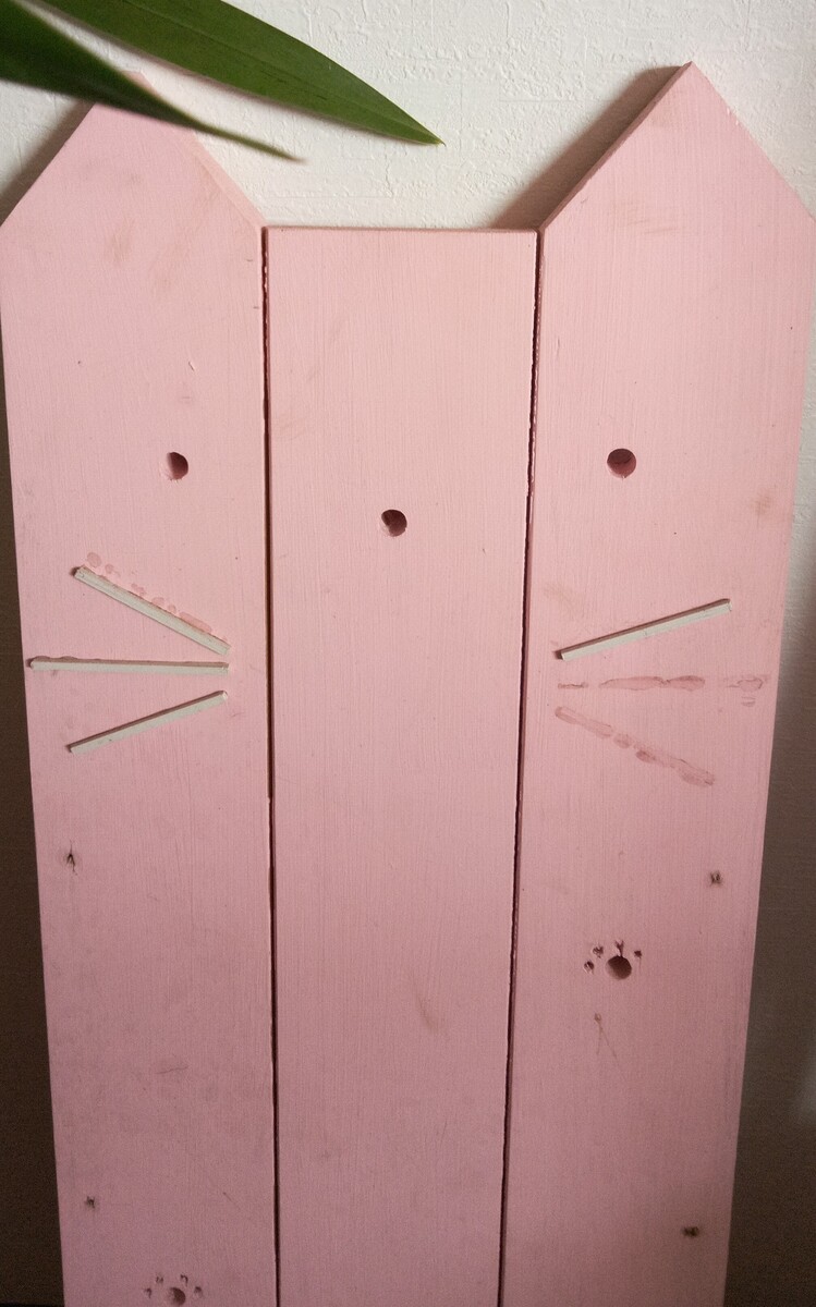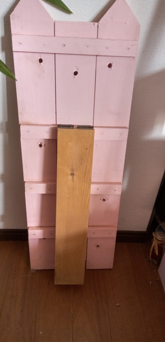 トップ > DIY > インテリア > ネコ型スリッパ立て❓ さき子 2022/01/16 17:30 ネコ型スリッパ立て❓ ネコ型スリッパ立て❓ これは、一応鎹を使ったスリッパ立てです。 鎹は重くていつの間にか取れていました。 猫のおひげさんも。 丁度ひげの下辺りにある穴のあたりに鎹をボンドで留めていました。 足跡🐾も付けて。 捨ててしまうには可愛そうでそのままにしています。 裏側です。 いいね 共有する 共有する X LINE リンクをコピー コメントする 1 件の返信 (新着順) ミュートしたユーザーの投稿です。 投稿を表示 べるん 2022/01/16 19:27 アイデアですね👌 ピンク猫ちゃん 華やかですね🌸 いいね 返信する ミュートしたユーザーの投稿です。 投稿を表示 さき子 2022/01/17 14:51 ありがとうございます。m(_ _)m あまり使いみちが無いのですが、処分するには可愛い過ぎて。 いいね 返信する