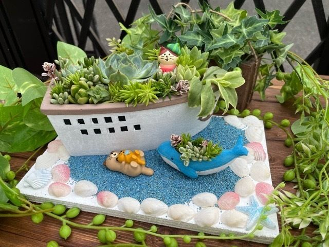 多肉ちゃんと海🏖 夏のバカンスご一緒したい~🌊🐬🐱 癒し効果絶大のアレンジ素敵ですね(∩´∀`∩)💕