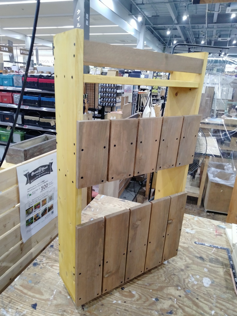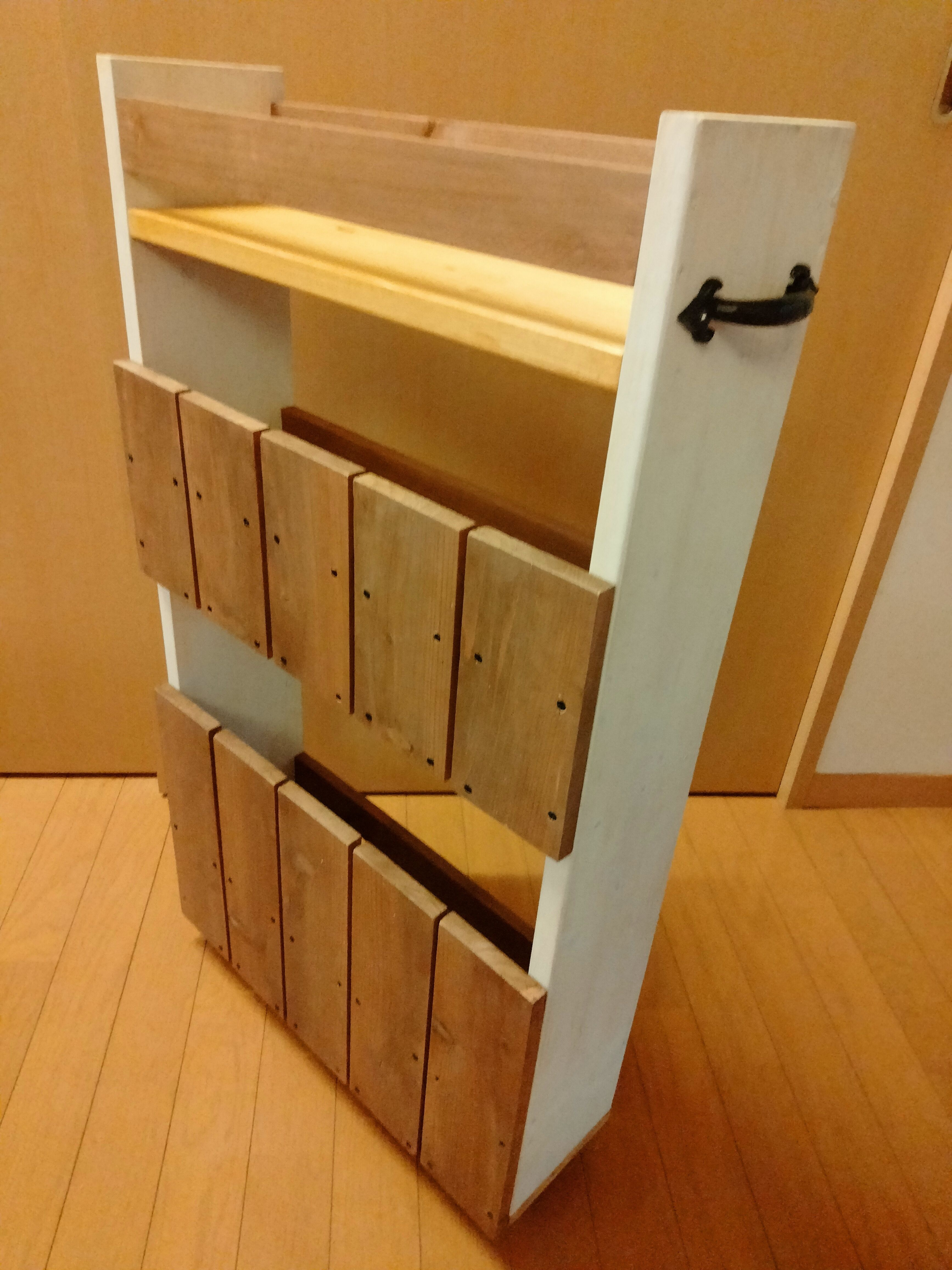 トップ > DIY > インテリア > 夏のDIY2022 【隙間ワゴン】 きょろっち 2022/08/09 19:31 夏のDIY2022 【隙間ワゴン】 本日、隙間ワゴンを作ってきました😀 WSではこんな感じ。おや、アイキャッチ画像と色が違いますね? 工程上、縦の板を色分け出来なかったので自宅で一度バラしてホワイトを塗装してます😆持ち帰ってからバラすことを想定して、ダボはしていません😅 ちなみに横の棚板の色はパイン。持込塗料です。明るくて夏のパイナップル🍍色🌟 うふふ💕 実は私のお気に入りのワインの収納場所になります(笑) 後日、ダボ埋めし、ホワイトを塗装し直しました。 きれいに仕上がって大満足です🌟 いいね 共有する 共有する X LINE リンクをコピー コメントする 7 件の返信 (新着順) ミュートしたユーザーの投稿です。 投稿を表示 源 2022/08/10 22:34 お疲れ様♪ 秘密のワインクーラーですね🍷 素敵な出来映えですね! この頃 予約が中々 取れないですね! いいね 返信する ミュートしたユーザーの投稿です。 投稿を表示 きょろっち 2022/08/11 04:23 源さん ありがとうございます💙 隙間ワゴンは予約開始1分で枠が埋まりました。 本当に人気のWSは予約が大変ですね💦 いいね 返信する ミュートしたユーザーの投稿です。 投稿を表示 ゆー 2022/08/10 08:37 きょろっちさん ホワイト素敵ですね💕 横板部分は後から家でダボしたのでしょうか❓ いいね 返信する ミュートしたユーザーの投稿です。 投稿を表示 きょろっち 2022/08/10 13:43 ゆーさん ありがとうございます💙 今回は三時間半WS、家に持ち帰ってからバラシ、塗装、組み立てで夕方になってしまい時間切れで、黒ビスの上からホワイトを塗ってます。そのうち、時間ができたらゆっくりダボをする予定です。 本当は黒ビスをアクセントにしても良かったけど、黒ビスの数が多すぎてアクセントにしてはくどすぎかなと(笑) いいね 返信する ミュートしたユーザーの投稿です。 投稿を表示 べるん 2022/08/10 08:14 とても可愛らしい色合いで、お洒落ですね✨ 製作前に構想があると、オリジナルにもなって素敵ですね😃 いいね 返信する ミュートしたユーザーの投稿です。 投稿を表示 きょろっち 2022/08/10 13:38 べるんさん ありがとうございます💛 色は一応決めていったのですが、やはり直前まで迷いました。参加された皆さんも直前まで迷いまくり…💦 あまりかわいい感じの色合いはWSで塗装しない(ほぼウォルナットとホワイトの組み合わせばかり…💦)のですが、パイン色をいれていつもと雰囲気は違うのですが、良い感じに仕上がったと思っています🌟 いいね 返信する ミュートしたユーザーの投稿です。 投稿を表示 KEI 2022/08/10 01:19 とっても良い色合いですね♡ ホワイト👍です✨ いいね 返信する ミュートしたユーザーの投稿です。 投稿を表示 きょろっち 2022/08/10 04:43 KEIさん ありがとうございます💚 どうしてもホワイトにしたくて頑張ってバラして再組立てしました💪 ホワイト可愛いです✌️ いいね 返信する ミュートしたユーザーの投稿です。 投稿を表示 さくら 2022/08/09 21:56 すてきなワイン🍷の収納場所が出来ましたね😊 うふふ💕 ホワイトもとっても良い感じです いいね 返信する ミュートしたユーザーの投稿です。 投稿を表示 きょろっち 2022/08/10 04:41 さくらさん ありがとうございます💛 うふふ💕 憧れの私専用のワイン収納🥰 お気に入りを入れてニンマリしてます😎 いいね 返信する ミュートしたユーザーの投稿です。 投稿を表示 はならん 2022/08/09 21:41 いいな〜いいな〜 素敵すぎ😍 いいね 返信する ミュートしたユーザーの投稿です。 投稿を表示 きょろっち 2022/08/10 04:38 はならんさん ありがとうございます💙 お気に入りです😊 いいね 返信する ミュートしたユーザーの投稿です。 投稿を表示 がーぁ 2022/08/09 20:56 良いですね♥️ ( *´艸`)うふふ いいね 返信する ミュートしたユーザーの投稿です。 投稿を表示 きょろっち 2022/08/09 21:23 がーぁさん ありがとうございます😊 うふふ💕 いいね 返信する