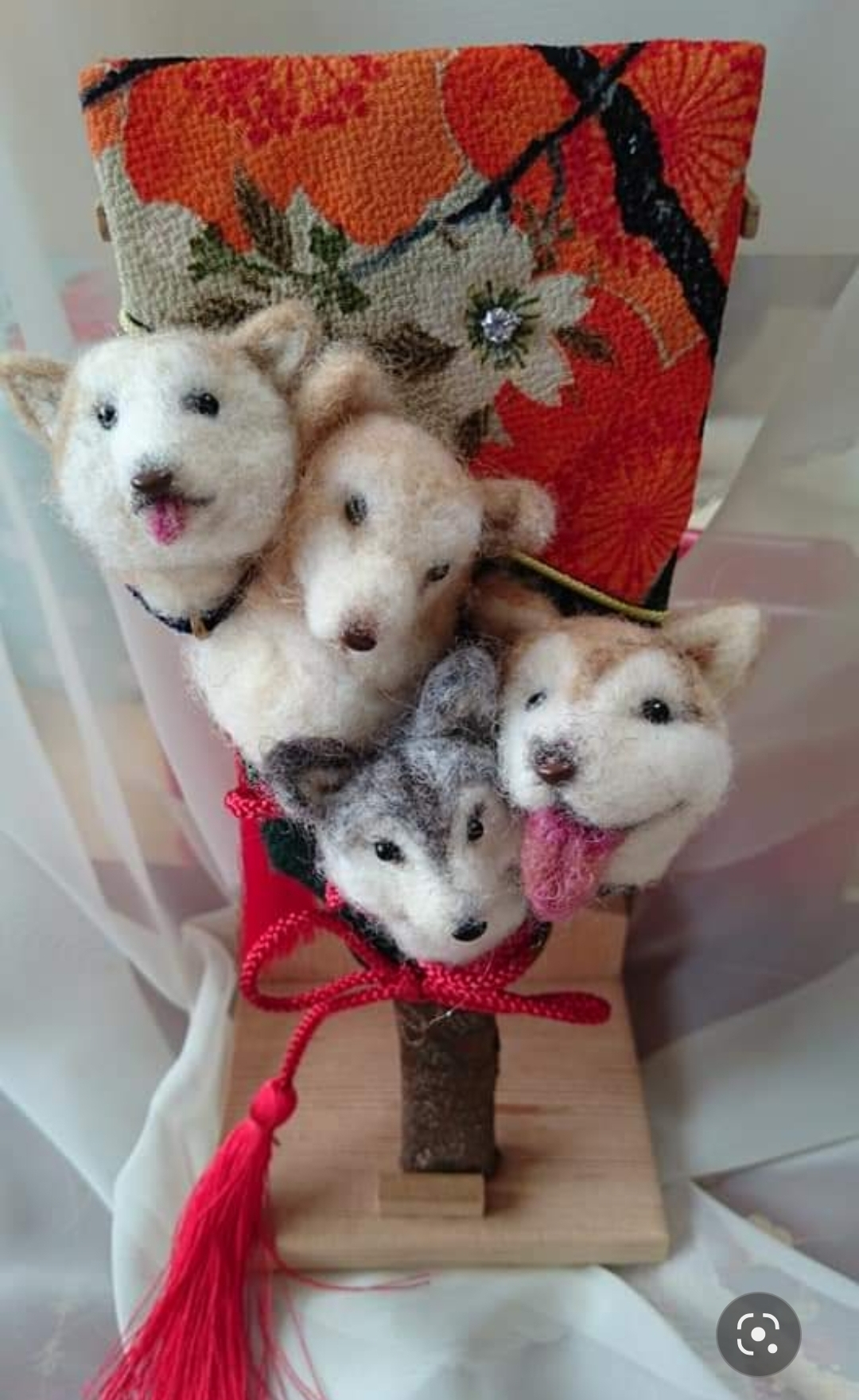 我が家の愛犬は小型犬プードルちゃん大型犬憧れてて北海道ハスキーちゃん飼い主さんとFacebook友達にハスキーちゃん作り出してもう8年…作品は郵送でプレゼント…我が家用はなかなか作れなくて家の子羽子板もいつか作ろう❣️