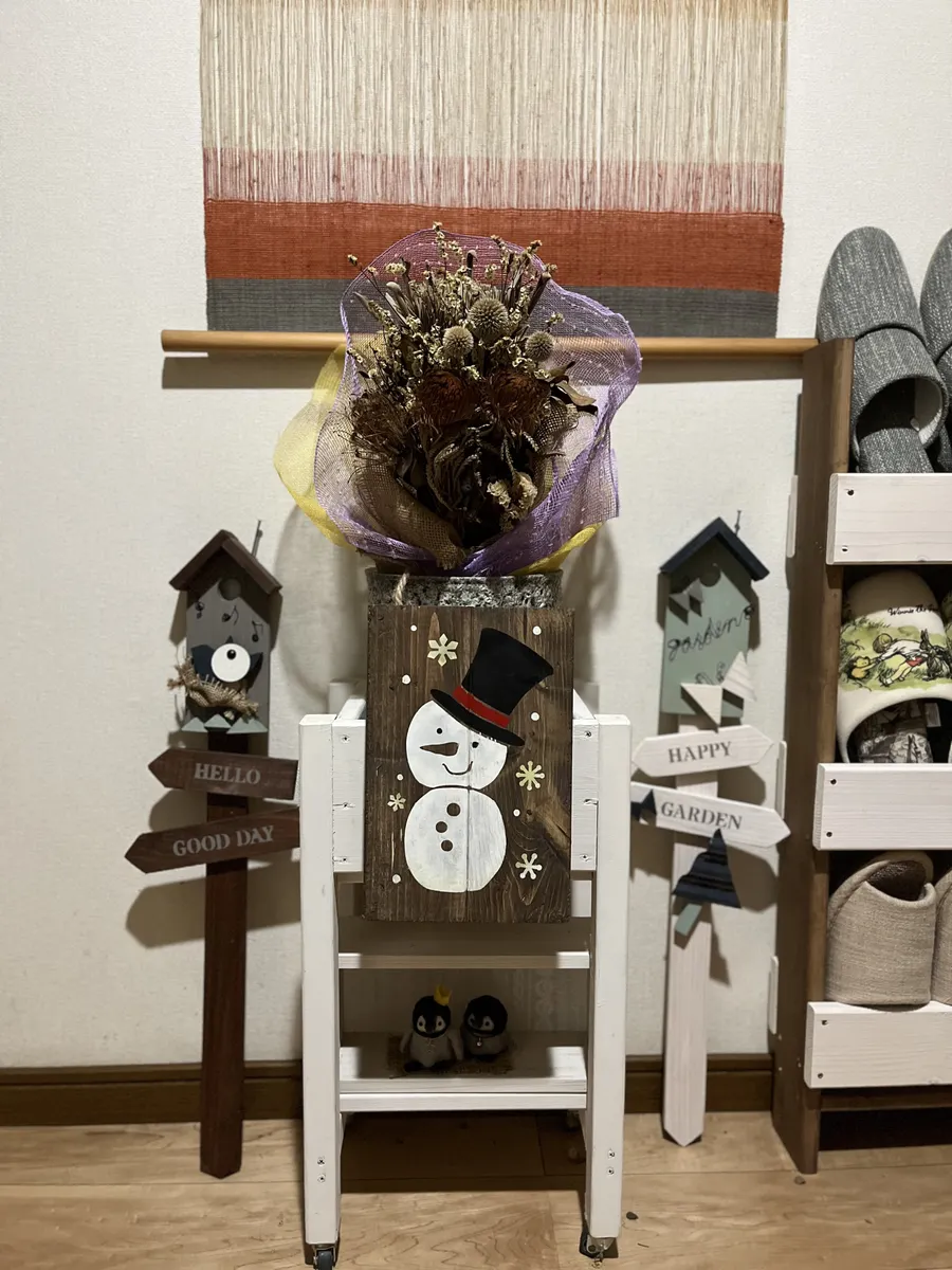 玄関でお出迎えしてくれる雪だるまさんに癒されます〜🥰