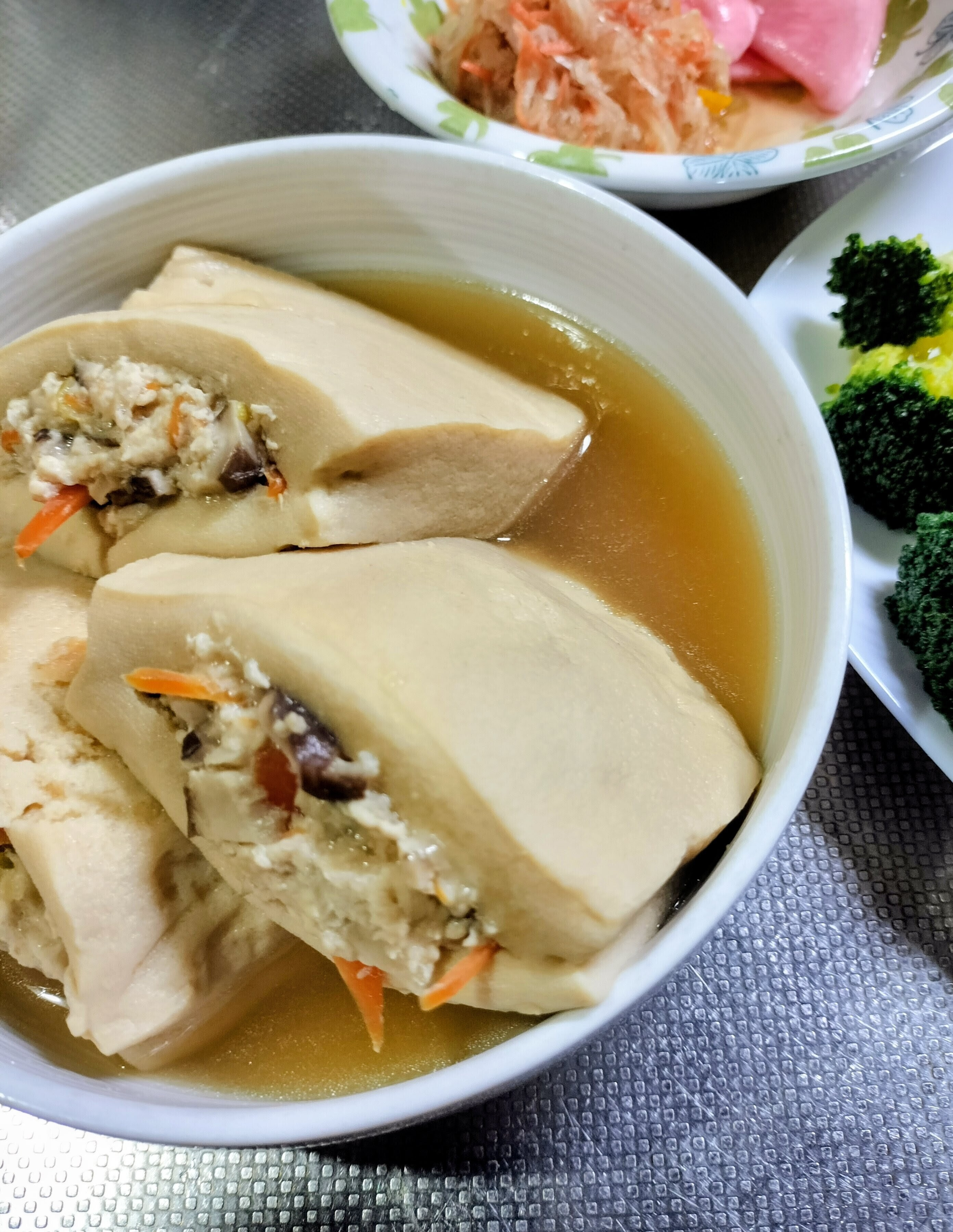 投稿を表示高野豆腐ほぼ使わないんですが、こちら見たら食べたくなりました。厚揚げでは作ったことあります。具がパンパンで美味しそうです😋
