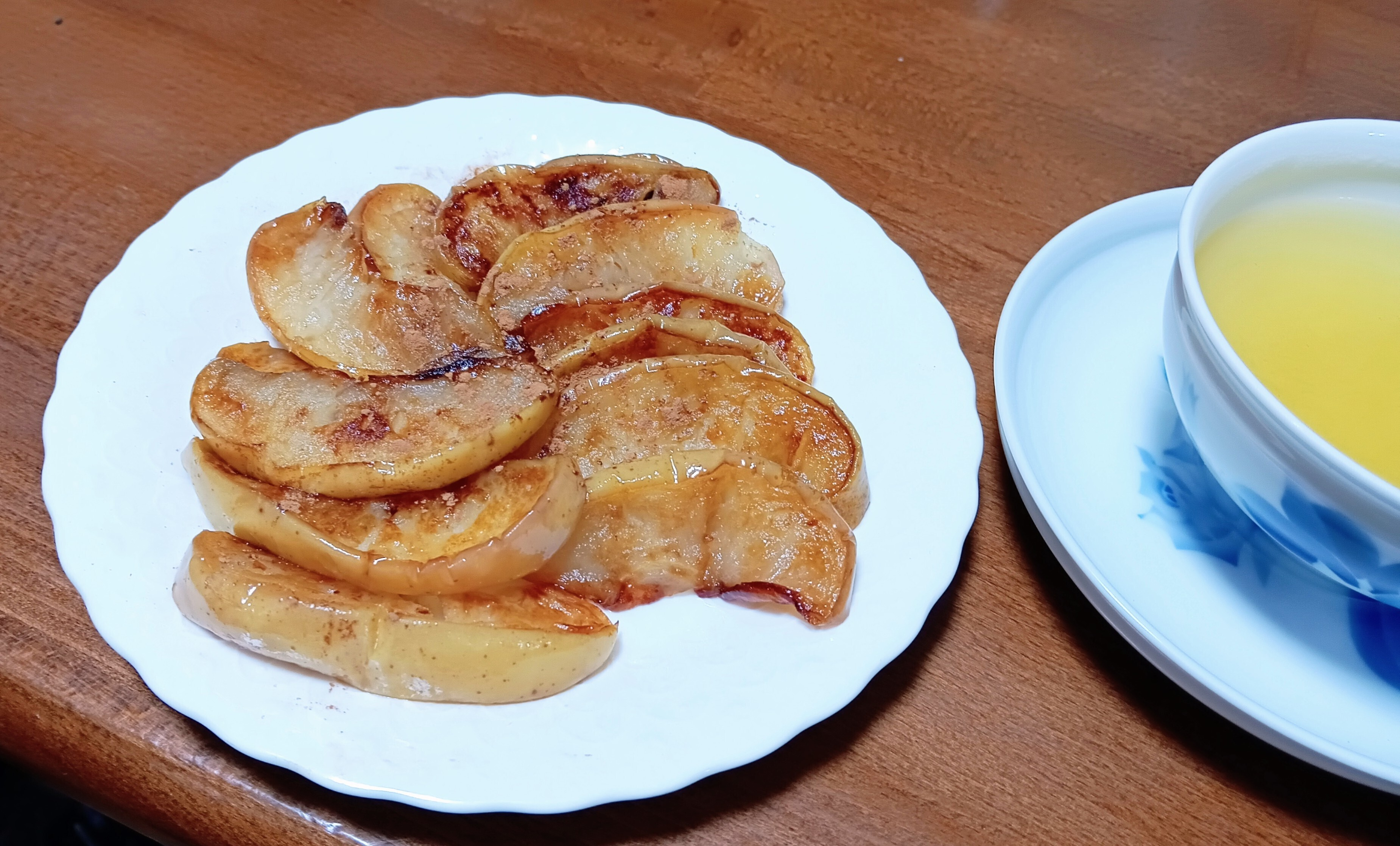 トップ > クッキング レシピ > スイーツ > りんごのソテー シナモン風味 ふーふーちゃん 2025/11/16 12:17 りんごのソテー シナモン風味 ■材料 りんご1個 バター 20g シナモンパウダー 適量 ■作り方 フライパンにバターを溶かしりんごを並べて焼く。片面がやけたらひっくり返す。両面に焼き色が付いたら火を止め皿に取り、シナモンをかける。あればアイスクリームをのせると豪華で美味しくなります。 ■工夫ポイント 少し焦げ目がつく程度に焼くと美味しさが倍増します。 いいね 共有する 共有する X LINE リンクをコピー コメントする 0 件の返信 (新着順)