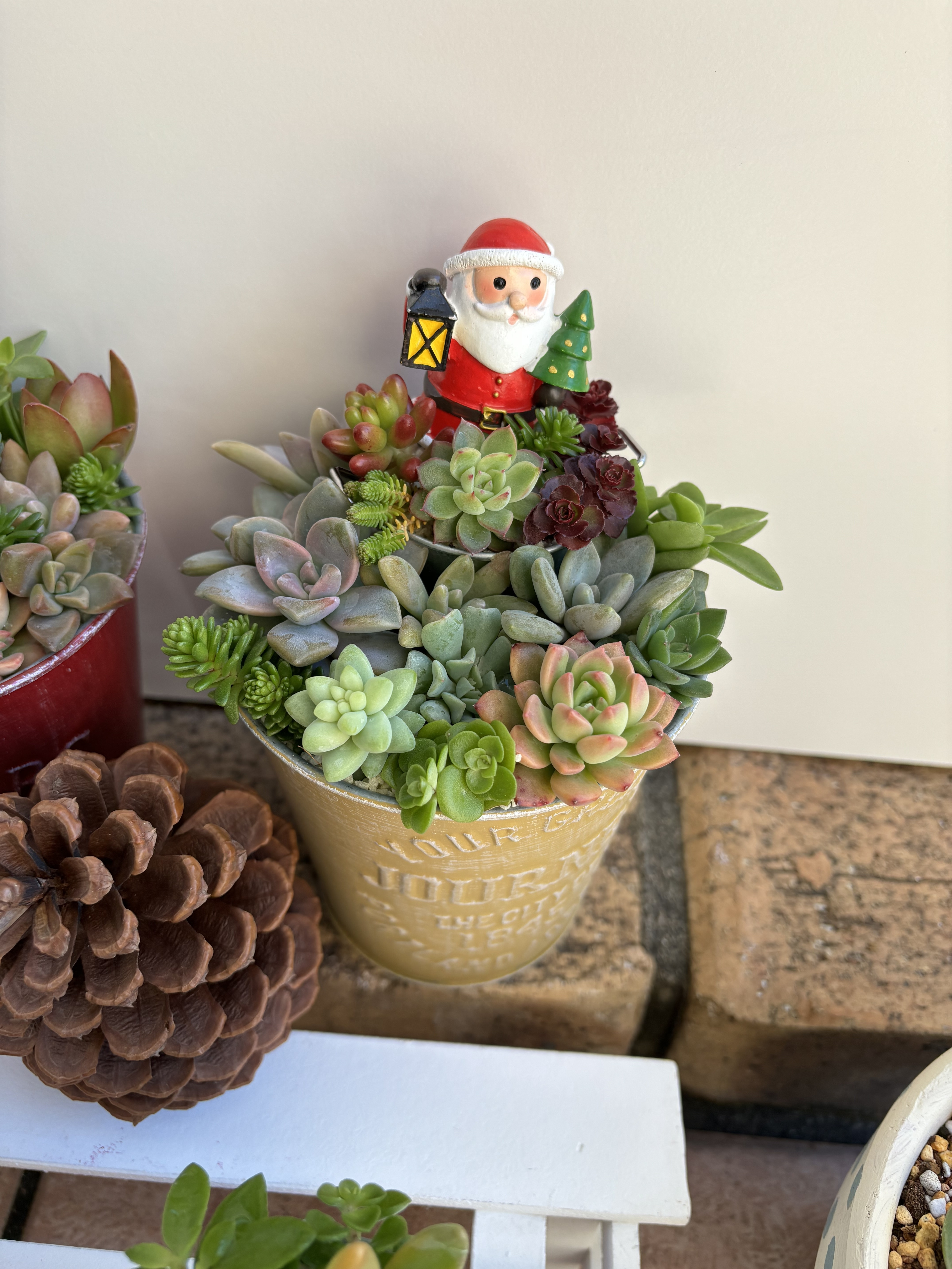 トップ > グリーン > 多肉ちゃんでクリスマス🎄寄せ 花*花 2023/12/07 00:34 多肉ちゃんでクリスマス🎄寄せ 自宅で育てた多肉植物を使って クリスマス寄せ🎄🤶豪華版を作りました🥰 鉢を2段にして 上の鉢にはサンタさんとセダム系の 小さな多肉植物を 下の鉢にはボリュームがでる多肉植物を 入れました😍 本当は もっと2段な感じが出るはずでしたが 誤算でした😰 サンタさんが安定するように 少し押し込んだハズが 重みもあって イメージしてたより沈みこんでしまいました 😅 でもまぁ良し!とします いいね 共有する 共有する X LINE リンクをコピー コメントする 6 件の返信 (新着順) ミュートしたユーザーの投稿です。 投稿を表示 みんと 2023/12/08 22:02 小さい多肉ちゃんもぷりぷりでカワイイ💕 二段だとボリューミーで素敵✨ いいね 返信する ミュートしたユーザーの投稿です。 投稿を表示 花*花 2023/12/08 23:05 みんと 本当はもっとタワー🗼にしたかったのですが…安定感のバランスが難しいと知りました😓また形を変えてチャレンジしてみます😊 いいね 返信する ミュートしたユーザーの投稿です。 投稿を表示 さくら餅 2023/12/07 12:17 すごーい! モリモリ 可愛いですねー! でっかい松ぼっくりも気になるぅ🌀 いいね 返信する ミュートしたユーザーの投稿です。 投稿を表示 花*花 2023/12/07 12:56 さくら餅 はい、モリモリ🌱です😍 松ぼっくり、こんなに大きいのはみたことなかったので何年か前に買いました🥰 いいね 返信する ミュートしたユーザーの投稿です。 投稿を表示 カインズ大好き 2023/12/07 10:25 クリスマス🎄ツリーみたいで、とても可愛いですね💕ウキウキしてきます✨ いいね 返信する ミュートしたユーザーの投稿です。 投稿を表示 花*花 2023/12/07 12:57 カインズ大好き ありがとうございます😊 そう言ってもらえると嬉しい♪(๑ᴖ◡ᴖ๑)♪です いいね 返信する ミュートしたユーザーの投稿です。 投稿を表示 Kurimaro 2023/12/07 07:12 素敵ですね😍✨ いいね 返信する ミュートしたユーザーの投稿です。 投稿を表示 花*花 2023/12/07 08:08 Kurimaro ありがとうございます😊作っては自己満足の世界です♪(๑ᴖ◡ᴖ๑)♪ いいね 返信する ミュートしたユーザーの投稿です。 投稿を表示 Kurimaro 2023/12/07 22:08 花*花 私も見てて癒されますよ😊 いいね 返信する ミュートしたユーザーの投稿です。 投稿を表示 ダンボ 2023/12/07 01:26 かわいく素敵! いいね 返信する ミュートしたユーザーの投稿です。 投稿を表示 花*花 2023/12/07 08:09 ダンボ ありがとうございます😊嬉しいです♪(๑ᴖ◡ᴖ๑)♪ いいね 返信する ミュートしたユーザーの投稿です。 投稿を表示 うさ 2023/12/07 01:09 色のバランス素敵です😊 いいね 返信する ミュートしたユーザーの投稿です。 投稿を表示 花*花 2023/12/07 08:12 うさ ありがとうございます😊 少し紅葉して赤が引き立ちますね〜💓1年で1番多肉寄せが楽しい季節です いいね 返信する