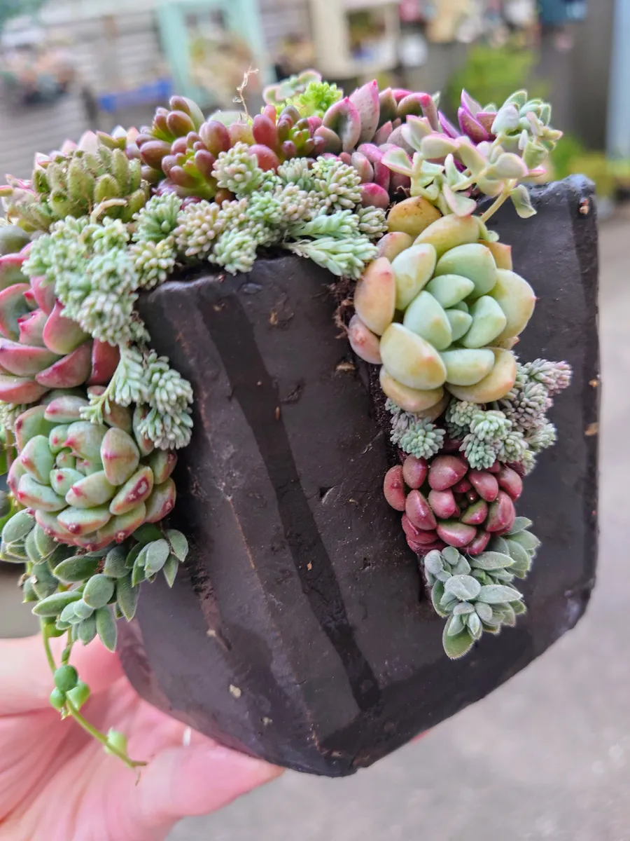 セダムと多肉を交互に入れてあげるとスポンジの目隠しになりますし