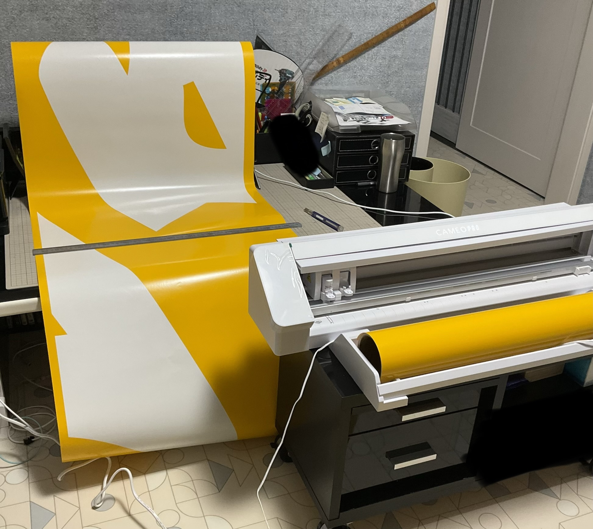 ご機嫌を直したカッティングマシンで大物のステンシルシートを作っていきますね🖥️✂️🖨️📃🔠🎶