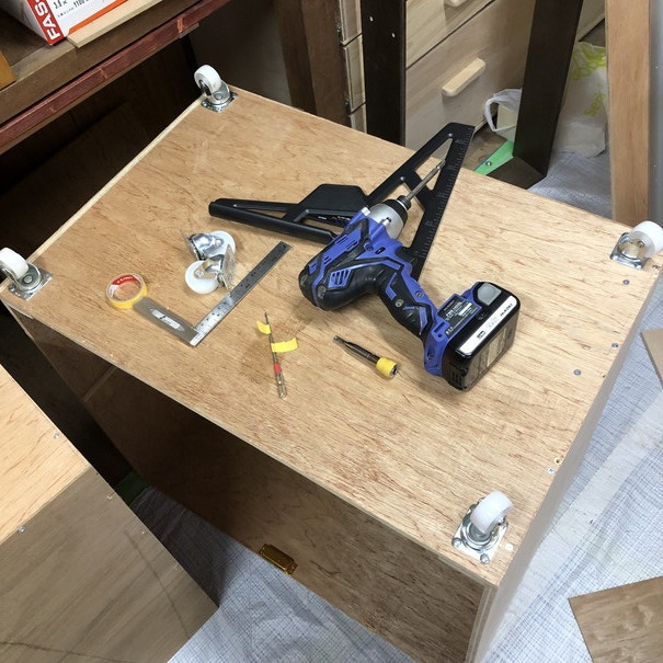 側板を取り付け、同じキャスターを追加します。