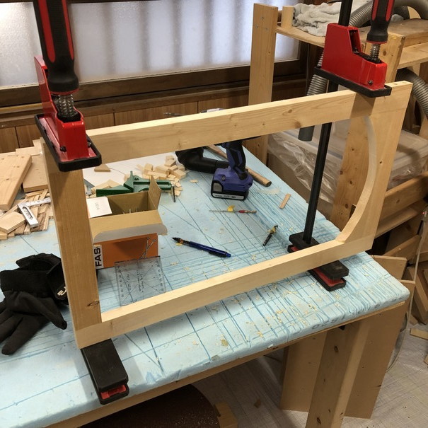 直角クランプを掛けていた材は、そのまま使うことにしました。
