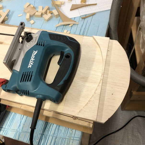 ジグソーでカーブを切っていきます。