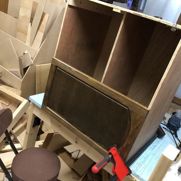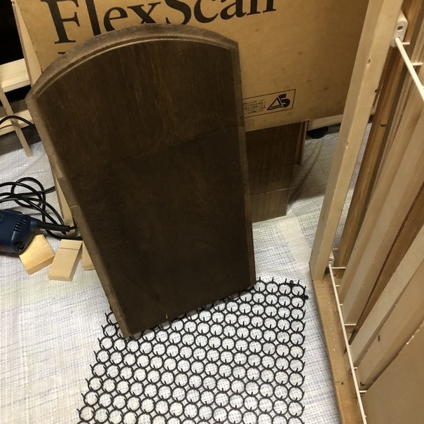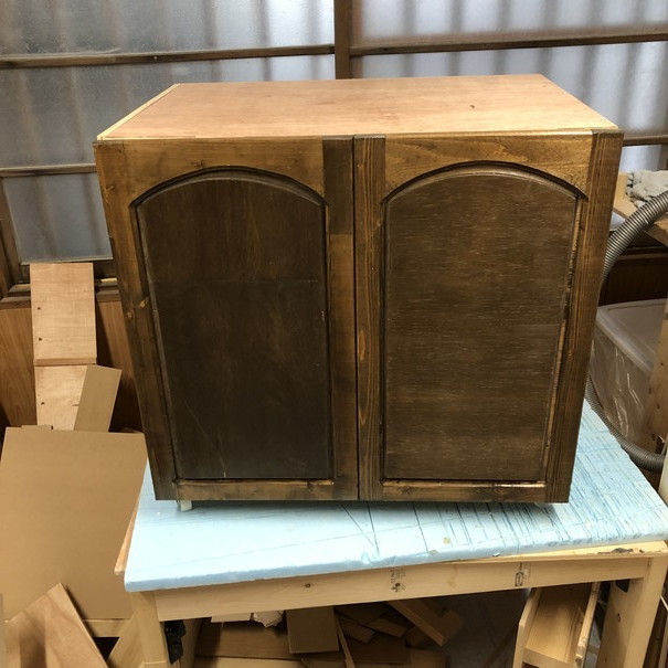 新しい試みとして、扉をアーチ状にしてみました。この手のデザインにするには、「ルーターと特殊なビットが必要ではないか?」と思っていましたが、ある時、「工夫すればできるかも?」と着想を得たので実行に移すことになりました。