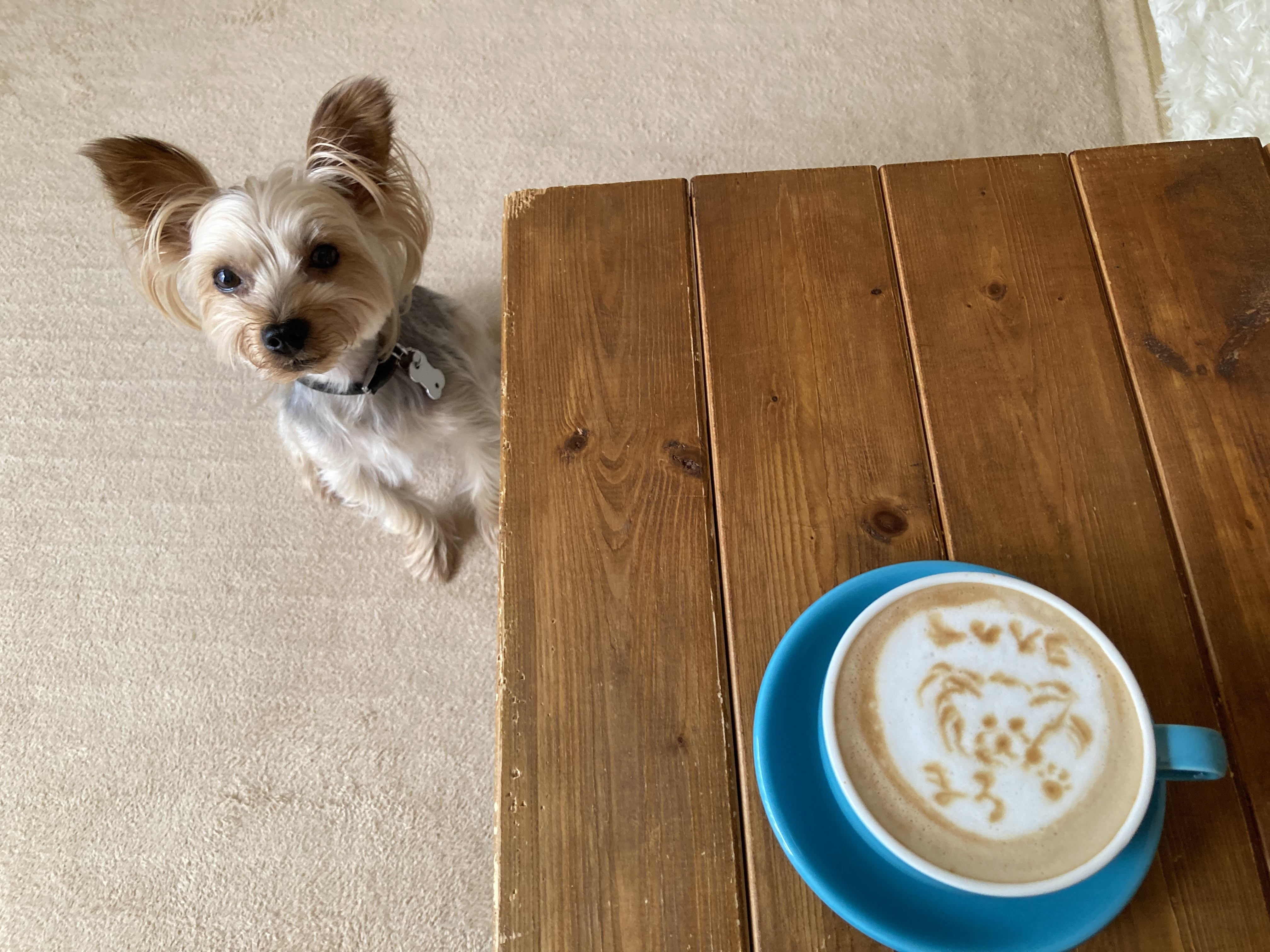ラテアートもかわいいまろちゃんですね✨(人´ω`)