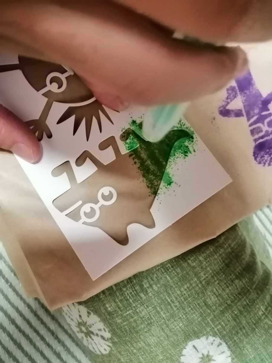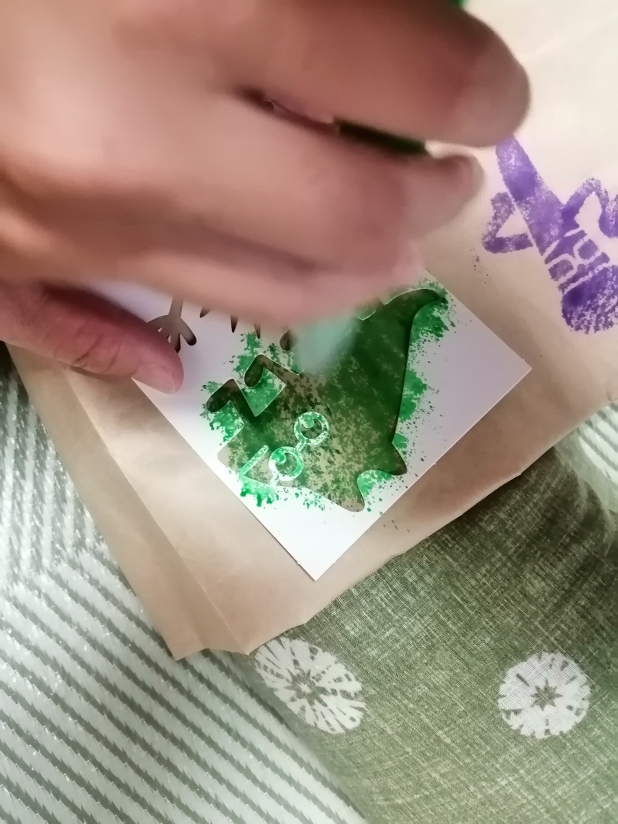 吹きつけて、ステンシルって、斬新ですね😱💦楽しそうですね🤗