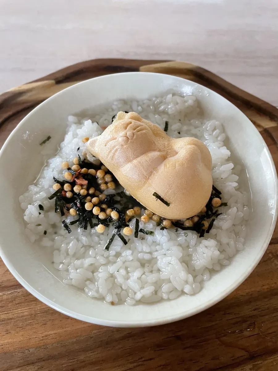 ねこちゃんのこの笑顔、崩して食べにくいなー😥💦💦