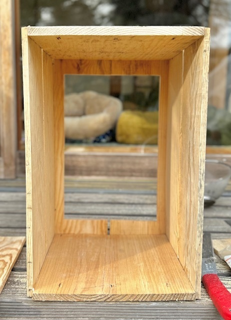 まずはリンゴ箱をぶった切って少し短くしました。