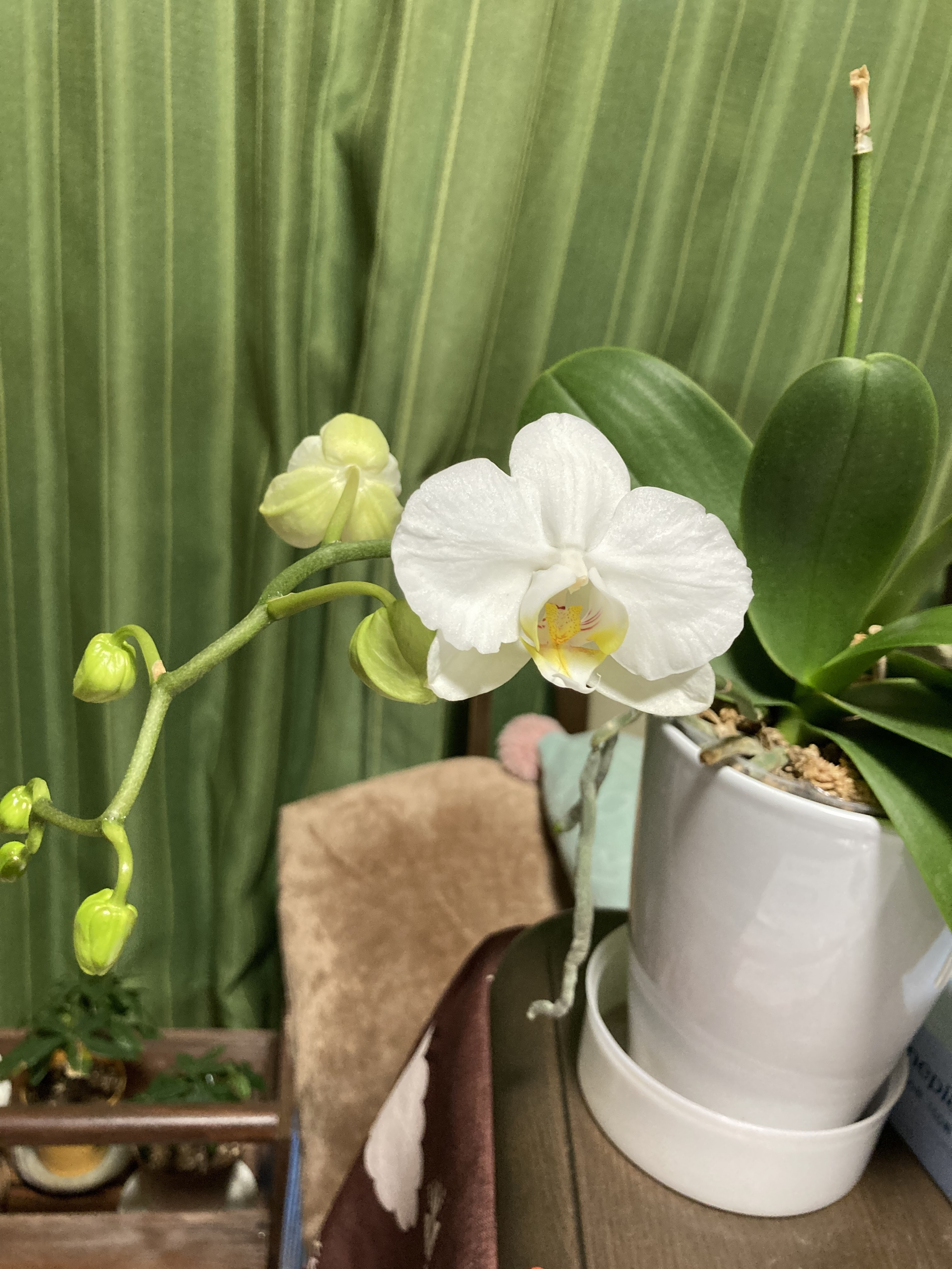 蘭は水やりが難しいですよね、上手に咲かせましたね〜✨花も葉のサイズにしては、おっきい🎵