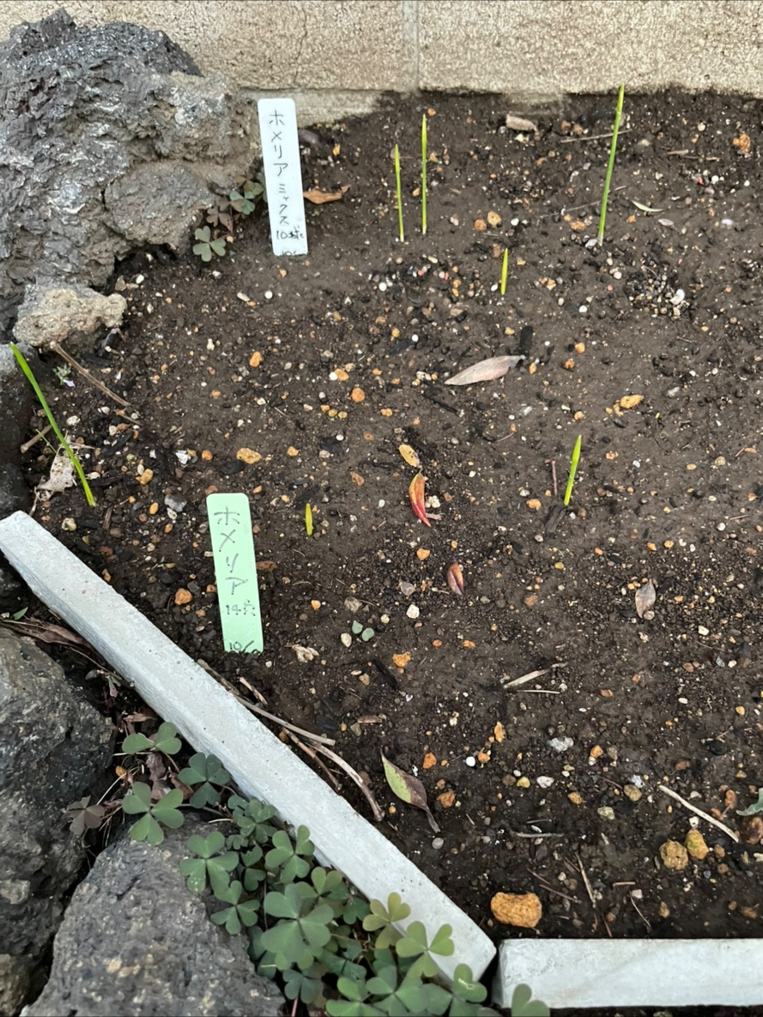 トップ > グリーン > ホメリア花壇ツンツン ソラ5551 2023/10/17 09:32 ホメリア花壇ツンツン ツンツン出てきたのは、去年秋仕込んで今年春に咲いたホメリアの芽です。 先日新たに10個(園芸ラベル白)、此処に球根を植えましたが、それは少し先になるでしょうね。 少し引いた画です。 いいね 共有する 共有する X LINE リンクをコピー コメントする 1 件の返信 (新着順) ミュートしたユーザーの投稿です。 投稿を表示 あめちゃん 2023/10/17 09:51 ……‥ツンツン (о´∀`о) ネーミングとツンツンした芽に デレデレですね💕 いいね 返信する ミュートしたユーザーの投稿です。 投稿を表示 ソラ5551 2023/10/17 12:15 あめちゃん 😀🙌👏💥🎉 いいね 返信する