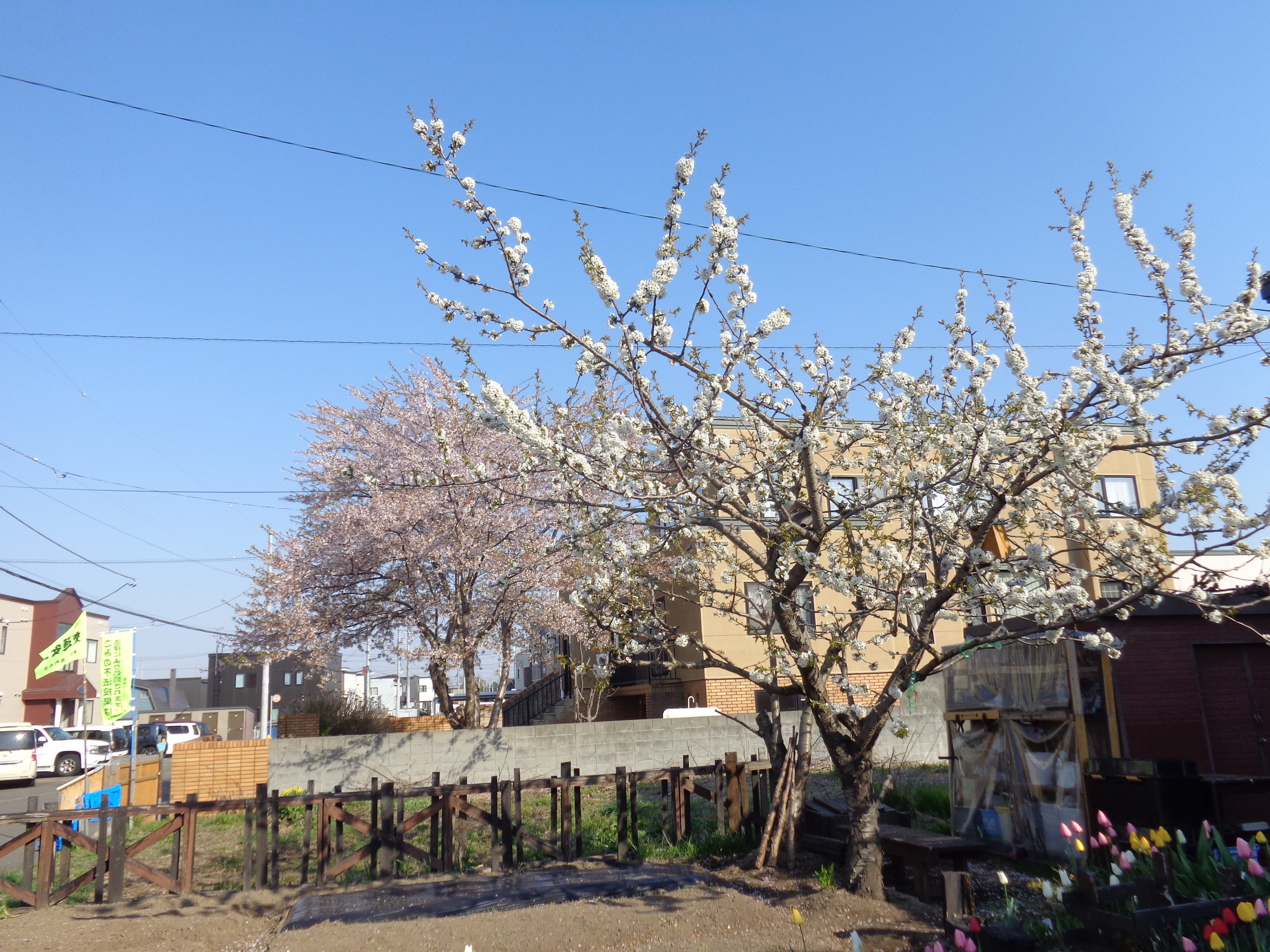 投稿を表示清々しい青空に、淡いピンクとピュアホワイトの桜の共演がとてもきれいですね👍畑仕事にも気合が入りますよね😀朝からこちらも元気いただきました😊