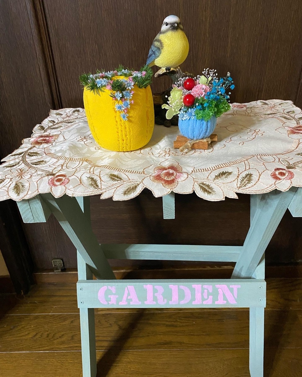 ミニテーブルに置くとさらに素敵になりますね😆