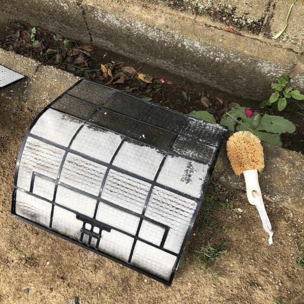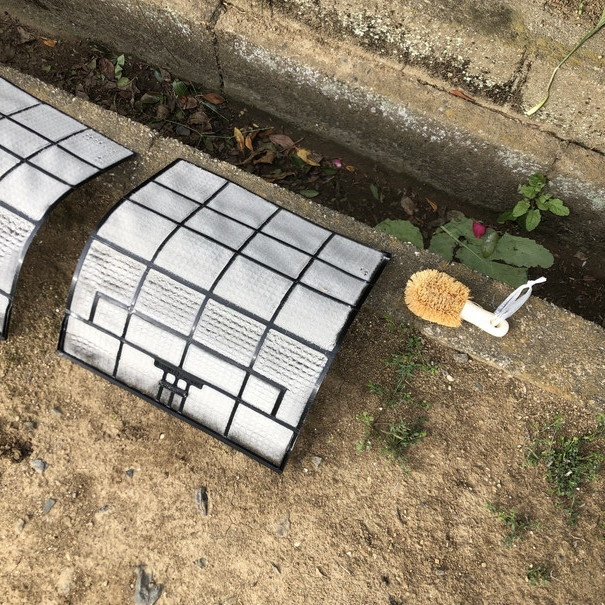 お掃除アイデア【たわしを使ってエアコンのフィルターを掃除】