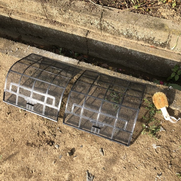 「たわし」と「洗車用ブラシ」で掃除してみましたが、どちらかといえば「洗車用ブラシ」のほうが掃除しやすい気がします。