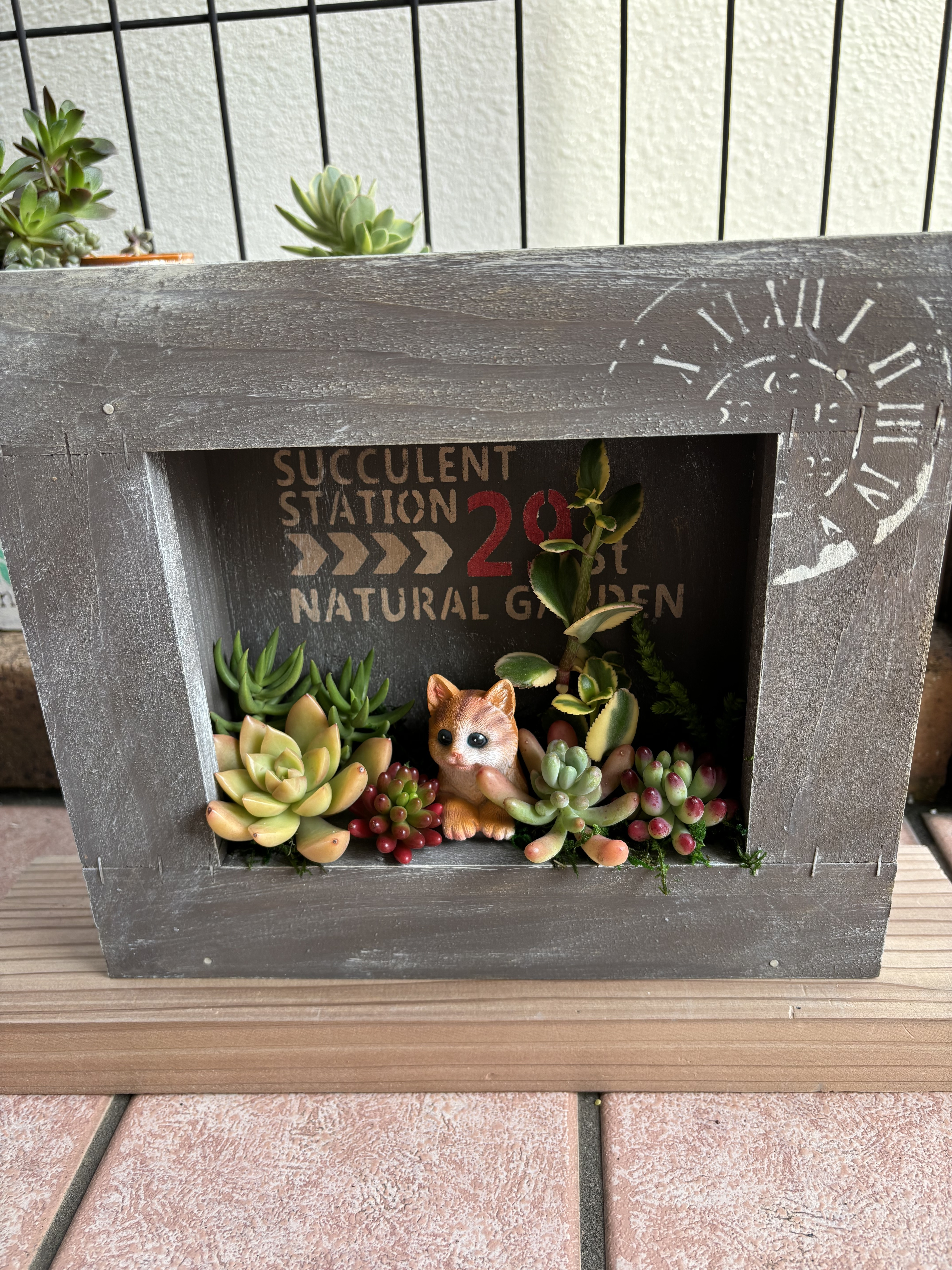 多肉ちゃんも猫ちゃんも素敵にまとまっていますね🩷