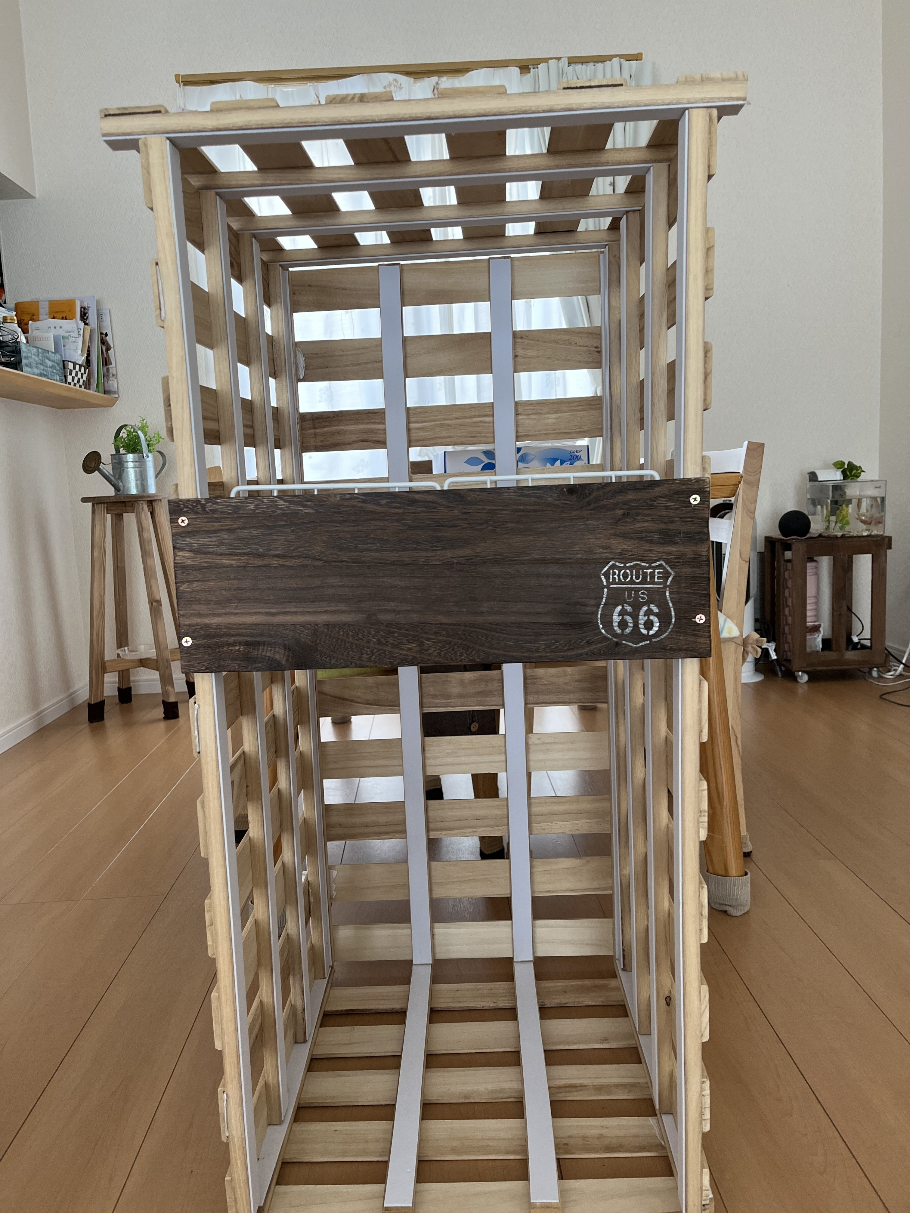 この写真は二段ですが、四段にして引き出しをつけようか検討してます。
