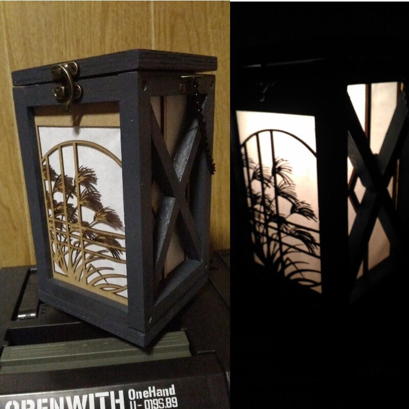トップ > DIY > インテリア > 夏工作ランタンを秋の行灯ぽく「和」改造 Mr.TS 2022/09/02 20:52 夏工作ランタンを秋の行灯ぽく「和」改造 タイトル通り「和」改造してみました。 付属のアクリル板の代わりに レーザー加工機で丸窓にススキ 中に電球仕込んで光ります。 ススキ面込の四方には障子紙を貼って、柔らかい光り方をするようにしてます。 電球にするか、LEDにするか悩みましたが 電球にして正解かなと いいね 共有する 共有する X LINE リンクをコピー コメントする 8 件の返信 (新着順) ミュートしたユーザーの投稿です。 投稿を表示 べるん 2022/09/03 08:50 和 の雰囲気と電球の灯りに、心なごみます✨ レーザー加工機が扱えると、デザインの幅が広がって、益々趣のある素敵な作品が出来ますね✨ いいね 返信する ミュートしたユーザーの投稿です。 投稿を表示 Mr.TS 2022/09/03 14:15 平面なデザインも立体的な部品作って組立もできるので レーザー面白いですよ いいね 返信する ミュートしたユーザーの投稿です。 投稿を表示 komu 2022/09/03 04:48 素敵です🎵 秋らしくて お月見って感じですね❤️ 障子紙が風情を感じますね✨ いいね 返信する ミュートしたユーザーの投稿です。 投稿を表示 Mr.TS 2022/09/03 14:16 まだまだ行楽って感じでも無いので 自宅で季節の風情を感じるのも良きです。 いいね 返信する ミュートしたユーザーの投稿です。 投稿を表示 yukiko 2022/09/03 00:14 これからの季節にぴったりですね🎑 なんだか落ち着きます😊 いいね 返信する ミュートしたユーザーの投稿です。 投稿を表示 Mr.TS 2022/09/03 14:21 夏工作キットを秋使用にするの悩みました🗿 いいね 返信する ミュートしたユーザーの投稿です。 投稿を表示 ぽんちゃん 2022/09/02 22:34 「和」ですね(´▽`)ノ 素敵です🙌 しっとりの雰囲気になります😊 いいね 返信する ミュートしたユーザーの投稿です。 投稿を表示 Mr.TS 2022/09/03 14:28 「和」改造大成功!(´ω`) いいね 返信する ミュートしたユーザーの投稿です。 投稿を表示 森の小さな工房 2022/09/02 22:07 伊勢型紙を貼り付けたのかと思いました。 レーザー加工機って、こんなこともできるんですね。 ほのかな明かりが風情を醸し出していますね~。 \(^▽^)/ いいね 返信する ミュートしたユーザーの投稿です。 投稿を表示 Mr.TS 2022/09/03 14:33 伊勢型紙いいですよねぇ 出力調整ミスすると 細い穂先なんかは消滅してしまいますけどね。 うまい事行けばかなり細い部分も出せますよ いいね 返信する ミュートしたユーザーの投稿です。 投稿を表示 ねこニャン 2022/09/02 21:49 風情があっていいですね✨ すすき🌾のデザイン 自分でなさったのですか? 秋らしくて 素敵です。日本人ならではの良さですよね❗️ 中は電球にしたそうですが、小さなものですか? ものにもよりますが 電球はかなり熱くなりますから。 電球色のLEDもありますので 色味が嫌でなかったら おすすめします。 いいね 返信する ミュートしたユーザーの投稿です。 投稿を表示 Mr.TS 2022/09/02 21:56 サイズと熱の問題で一番小さいのにしました。 電池ボックスも中に入れてるので、小さいのでもキツキツです。 いいね 返信する ミュートしたユーザーの投稿です。 投稿を表示 ねこニャン 2022/09/02 22:40 ありがとうございます。 仕事で扱っていますが ほんと電球は熱に苦労しますよね。 LED出てきて 感動したのは懐かしい思い出です😁 いいね 返信する ミュートしたユーザーの投稿です。 投稿を表示 Mr.TS 2022/09/03 14:40 あ、すすきは自分で撮った写真から抜き出しました。 背景消してシルエットにしていらない部分は消しゴムで〜です。 LEDはテープライト見て「すげぇ!」ってなった覚えがあります いいね 返信する ミュートしたユーザーの投稿です。 投稿を表示 たびうさ 2022/09/02 21:28 とてもステキです💕 縁側に置いて、側には蚊取り線香、浴衣を着てお月見する光景が浮かびます🥰 風流です🎑 いいね 返信する ミュートしたユーザーの投稿です。 投稿を表示 Mr.TS 2022/09/02 21:57 あー、いいですねー それをやるためには先日の雨が入り込んだ縁側を掃除しないとならんのですが やる気出てきました。 いいね 返信する ミュートしたユーザーの投稿です。 投稿を表示 きき 2022/09/02 21:18 渋い〜けど、いいですね🤗これからの季節にピッタリ🙌 細し、障子も貼り電球だからかな?灯りが優しく感じますね🤗和には、電球が似合うと思うのは、私だけか笑😁 いいね 返信する ミュートしたユーザーの投稿です。 投稿を表示 Mr.TS 2022/09/02 22:00 フィラメントの発する光が好きです。 もちろん周りにはLEDの光が溢れているわけですが リラックスするときは電球の光の方が好きですね。 LED電灯とかはどうも光が目にきついです いいね 返信する