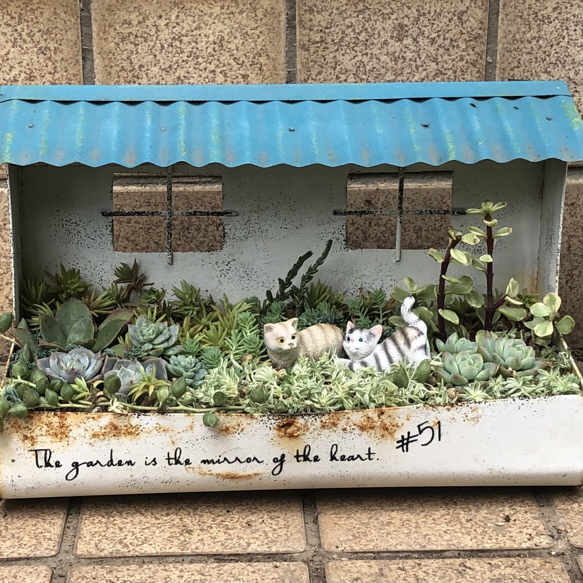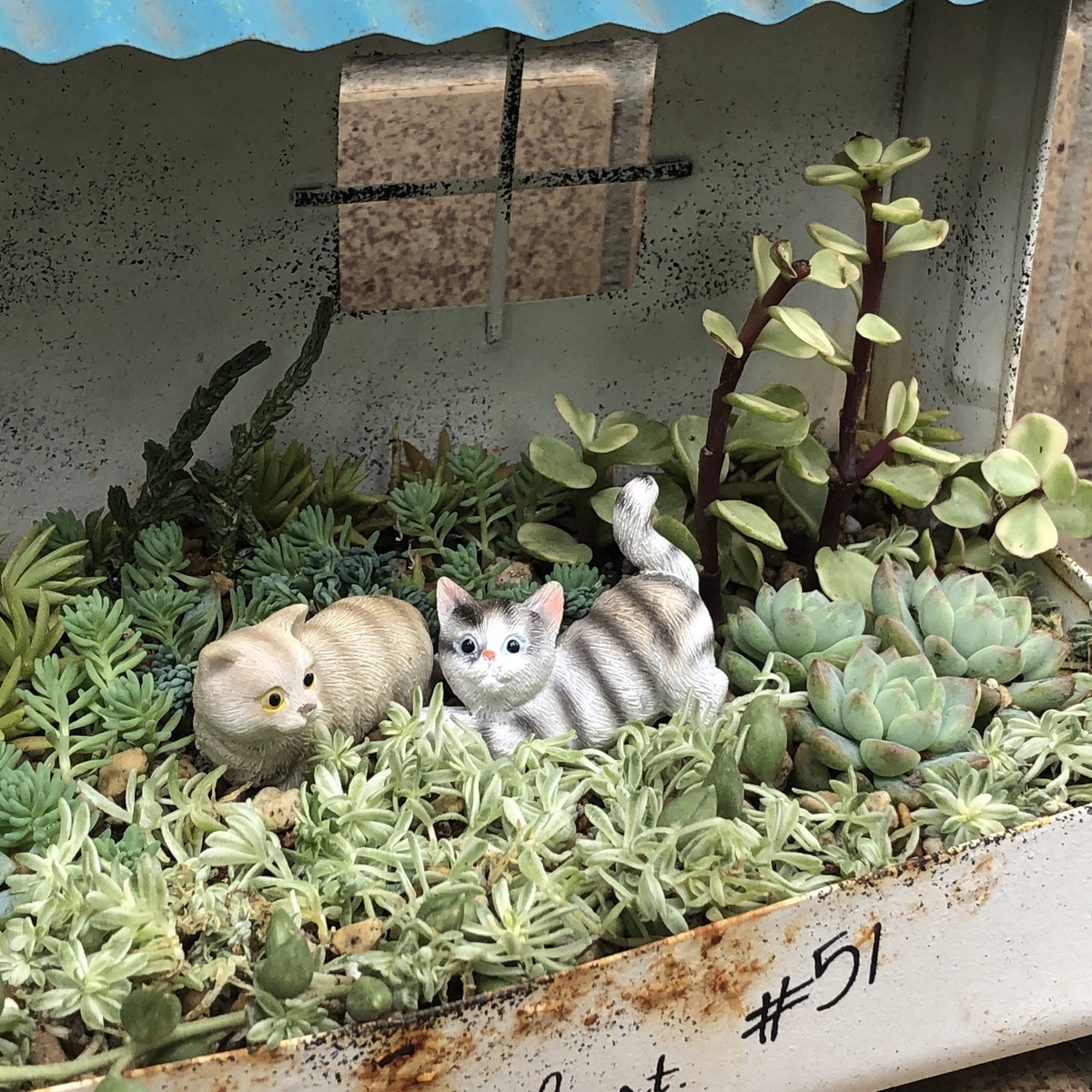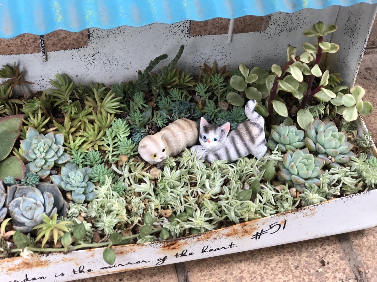 多肉ちゃんの中で、猫ちゃんたちが、日向ぼっこですね🥰💕