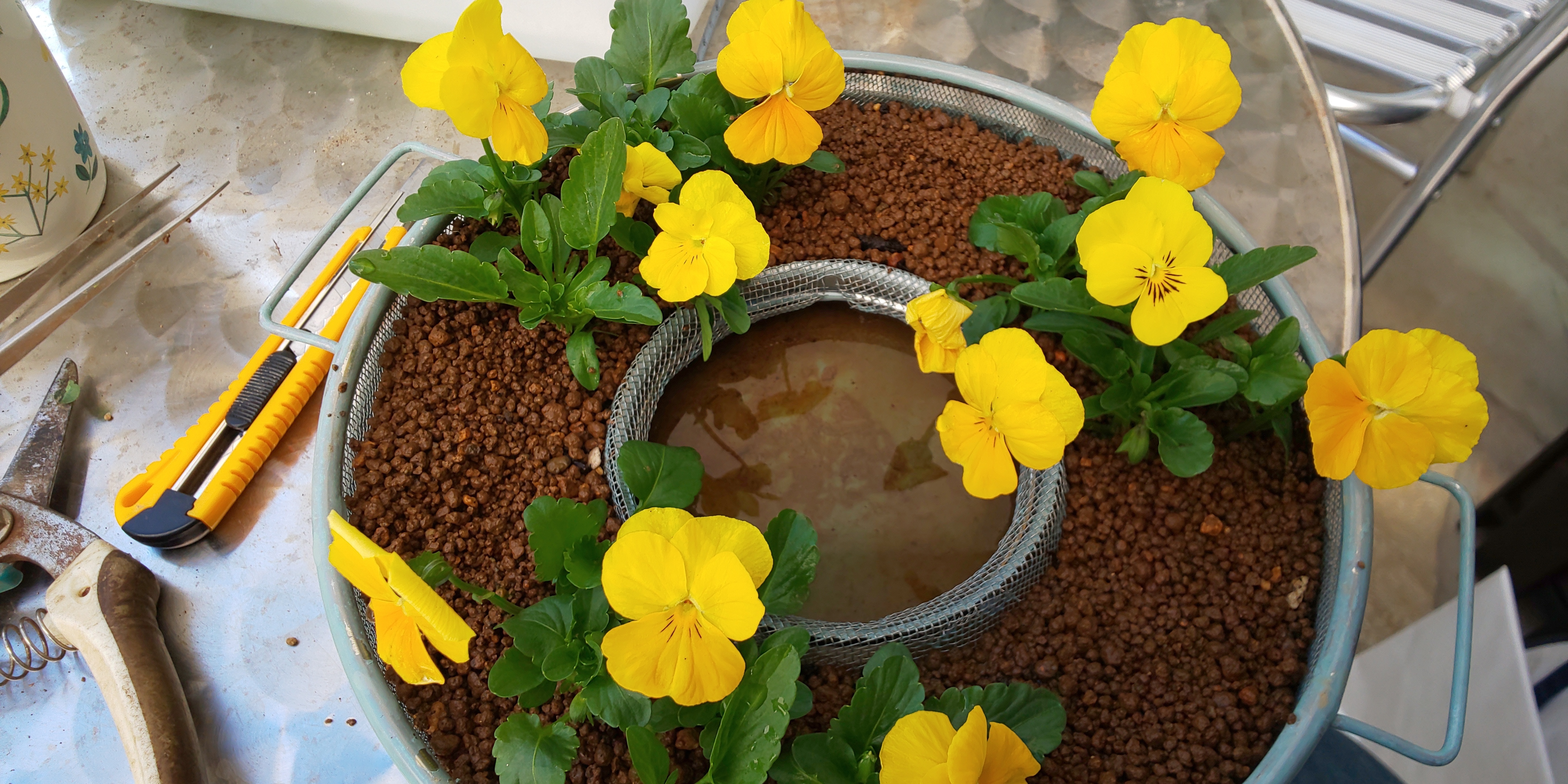 ④水をたっぷりやる。汲み置きの水ではなく水道水で。(花もつぼみも摘みとります。)完成です。😍